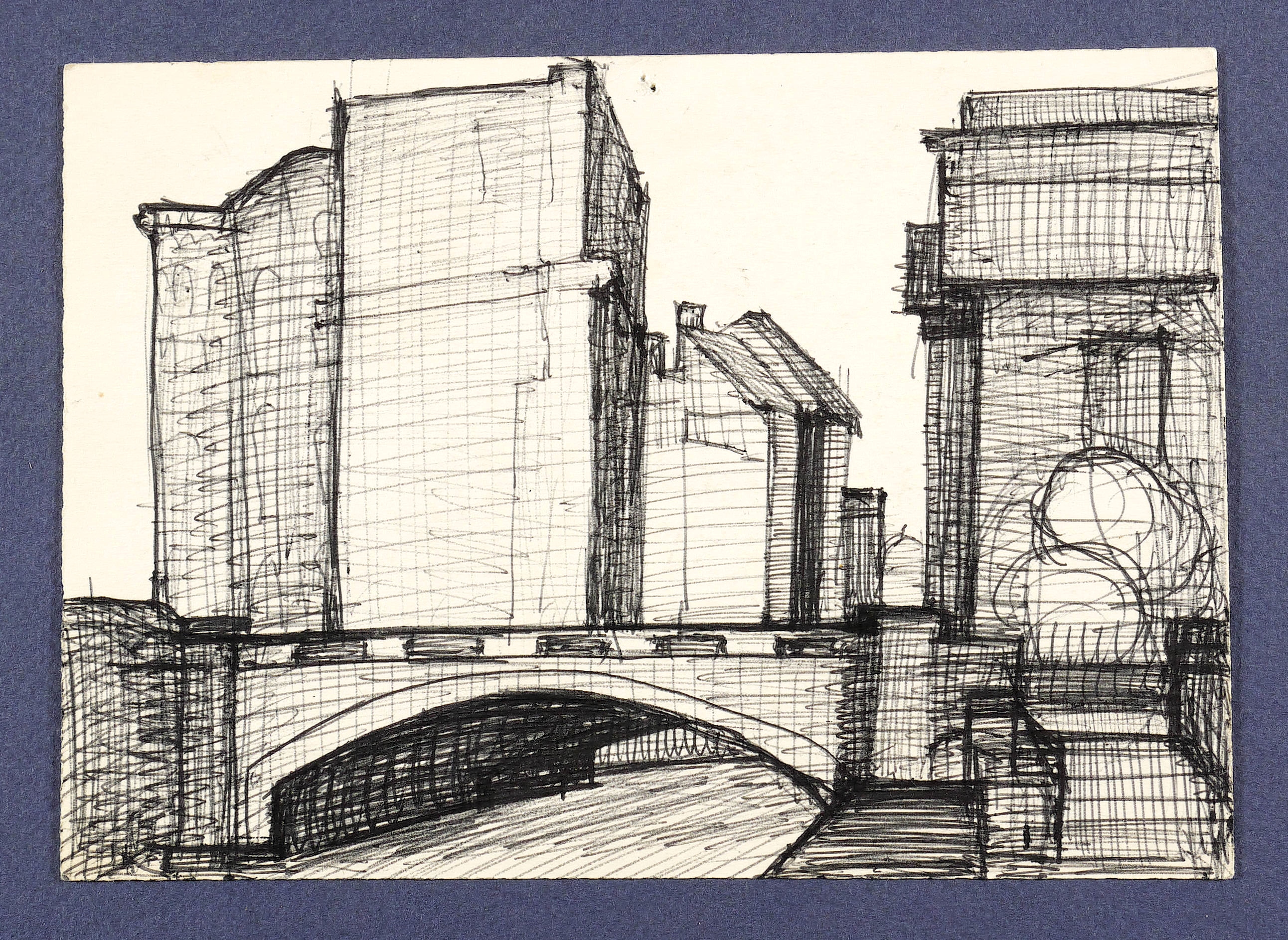 Verso in Bleistift signiert und datiert. Dazu Titel. – Verso weitere Skizze mit einer Stadtlandschaft. – Im oberen Rand originale Reißzwecklöchlein. Guter Zustand.
