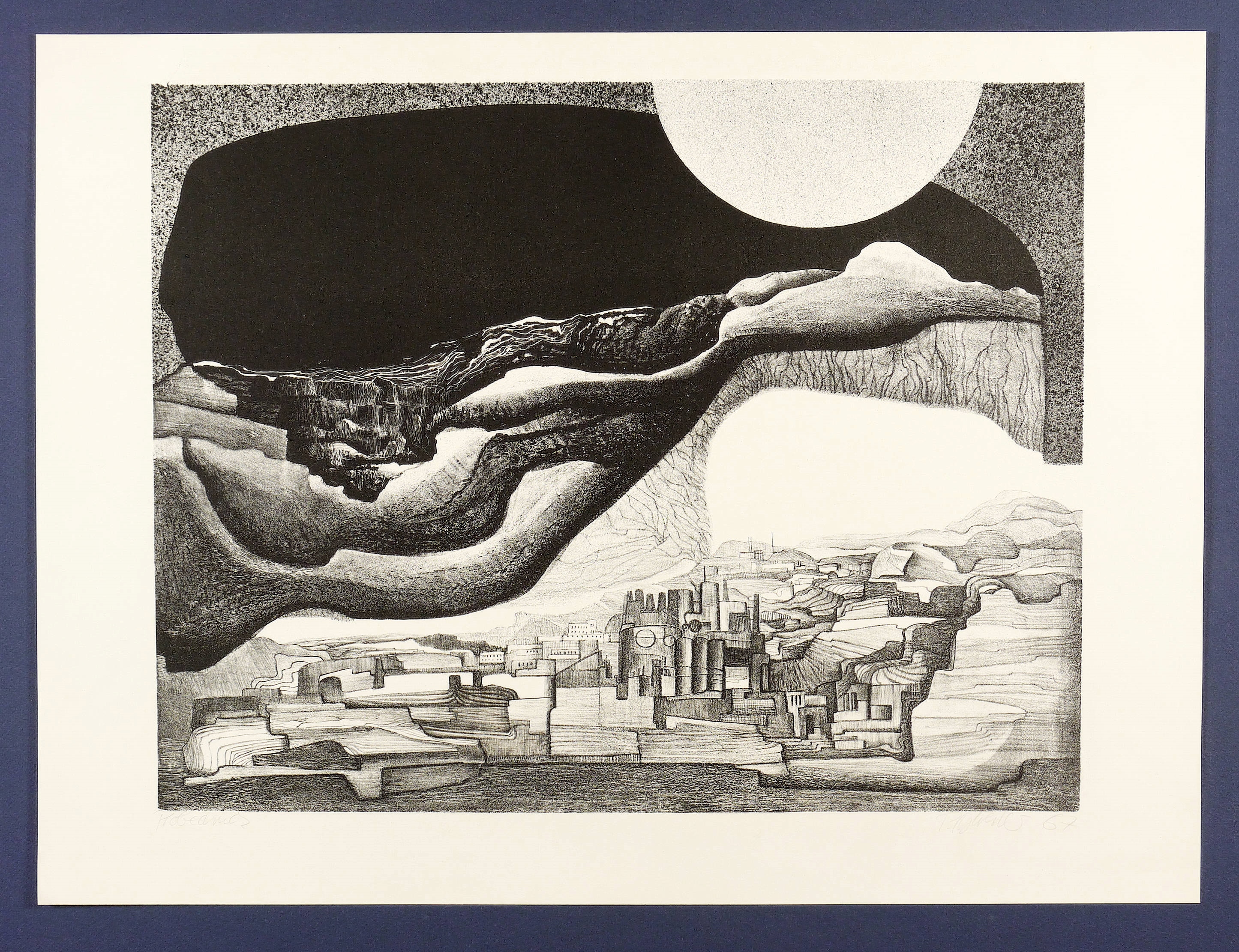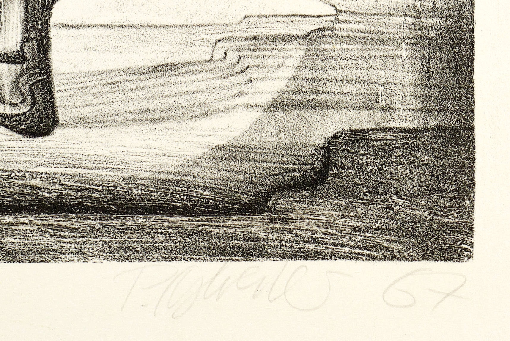 1967. Lithografie / Kreide- & Pinsellithografie, partiell geschabt & gespritzt, auf hellem Karton. – Originale Künstlergrafik, von Peter Sylvester. – Probedruck. – 35,8 x 45,5 cm (Darstellung), 43 x 57 cm (Blatt).