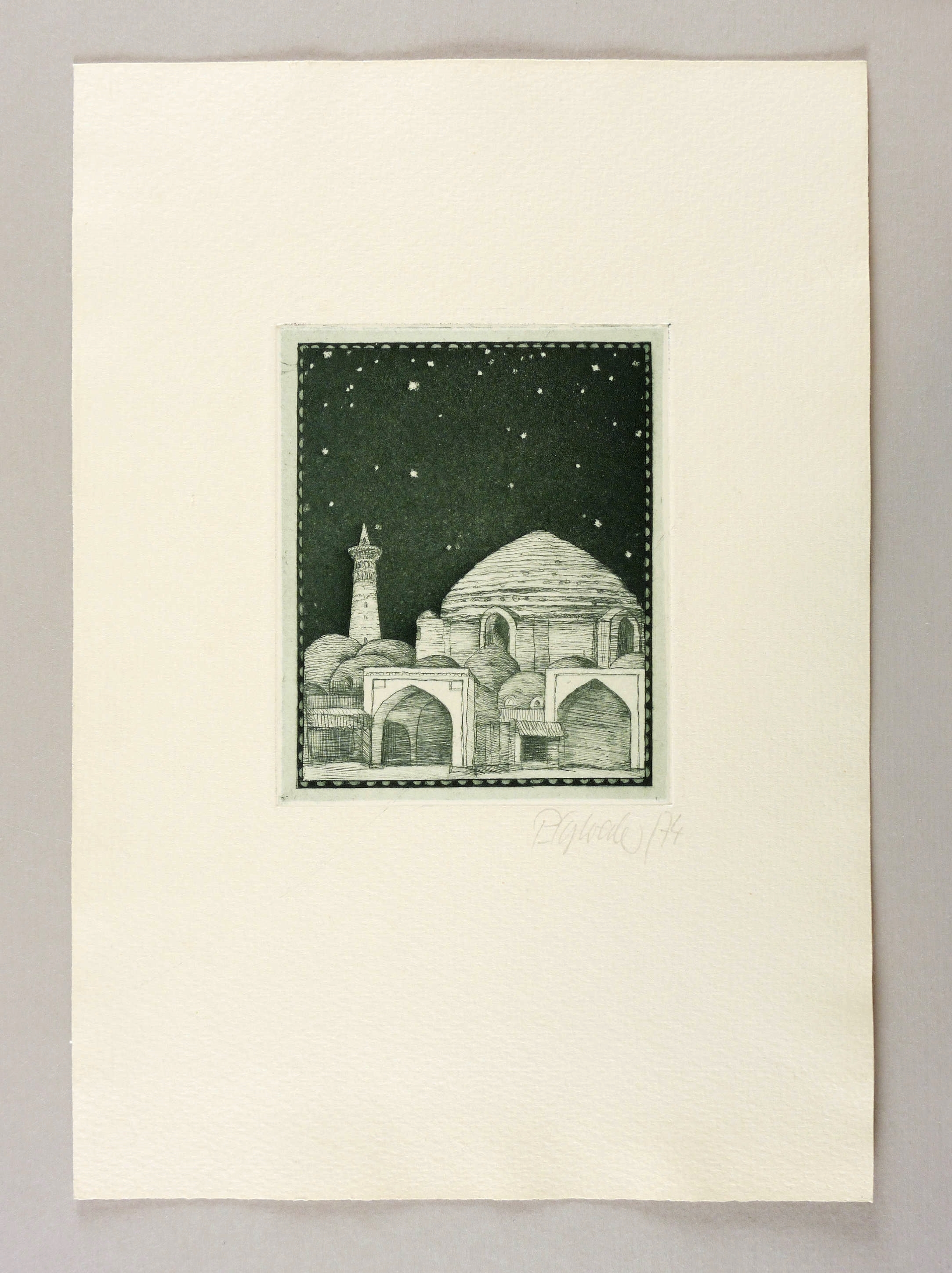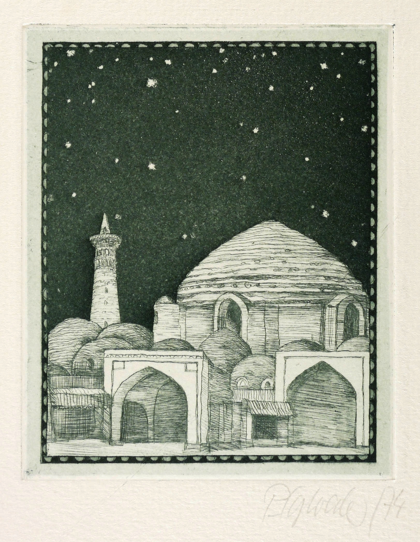 Sylvester, Peter. – Kalon-Moschee in Buchara mit Minarett. – „Tausendundeine Nacht (zu Peter Biele)”.