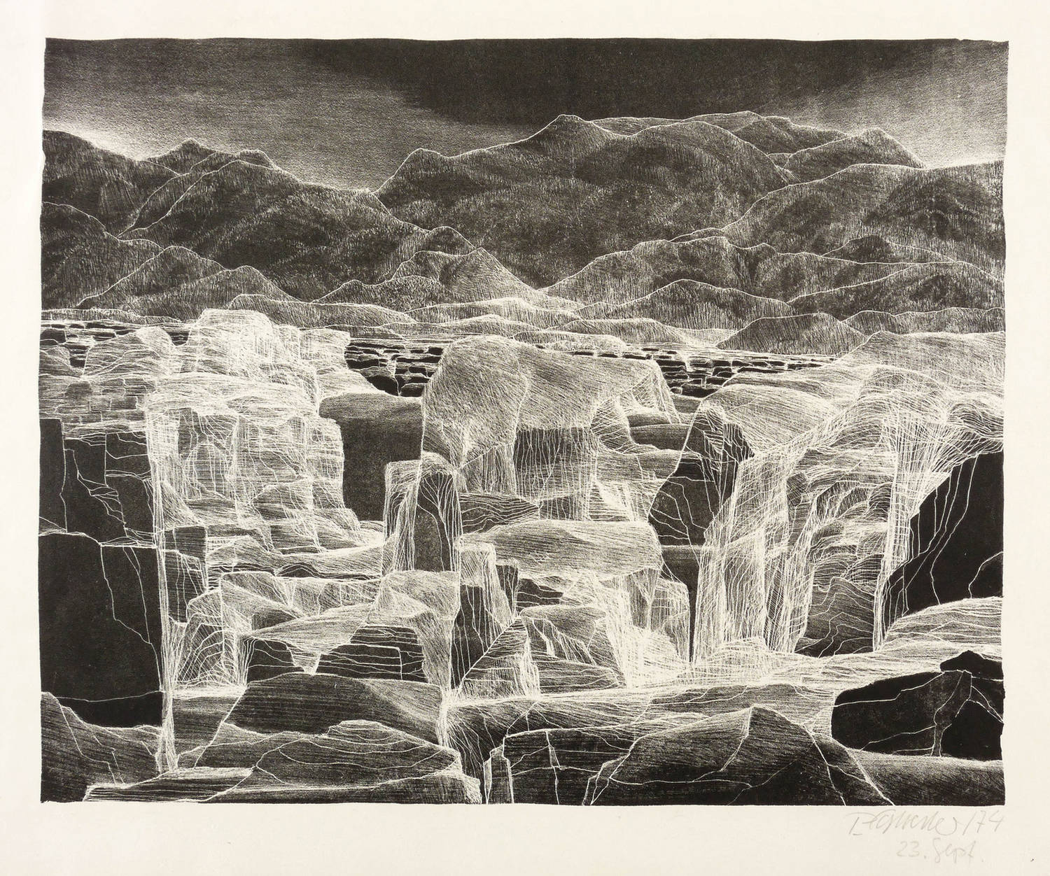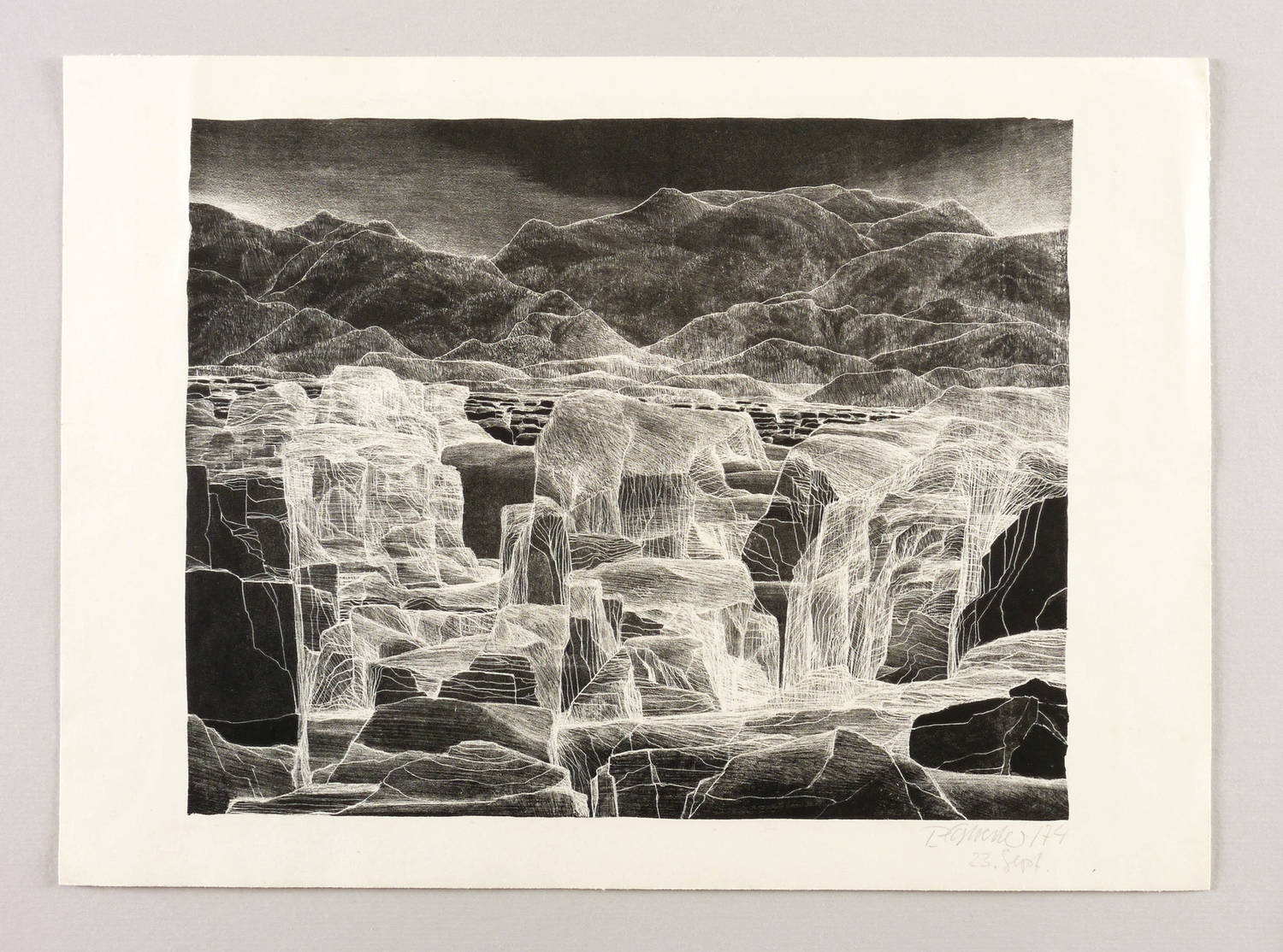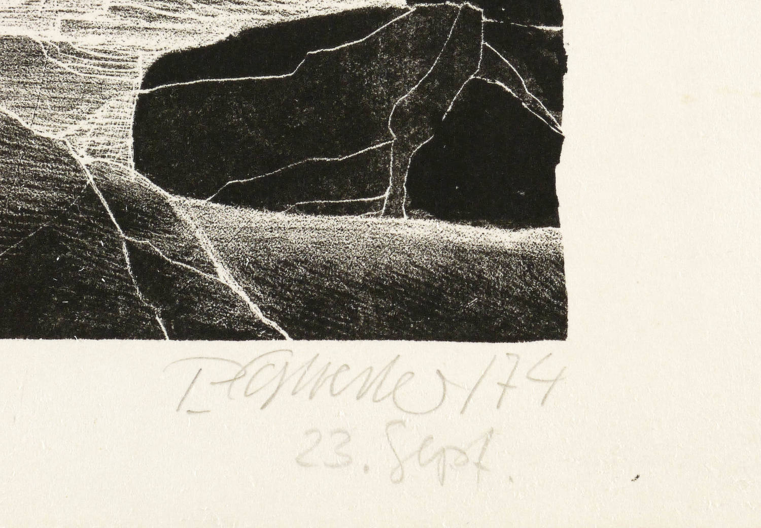 Penndorf 141. – Rechts unten in Bleistift signiert und datiert: ″P. Sylvester / 74 23. Sept.″ – Leichte Knickspuren im Papier. Mäßig guter Zustand.