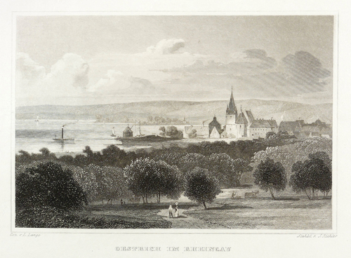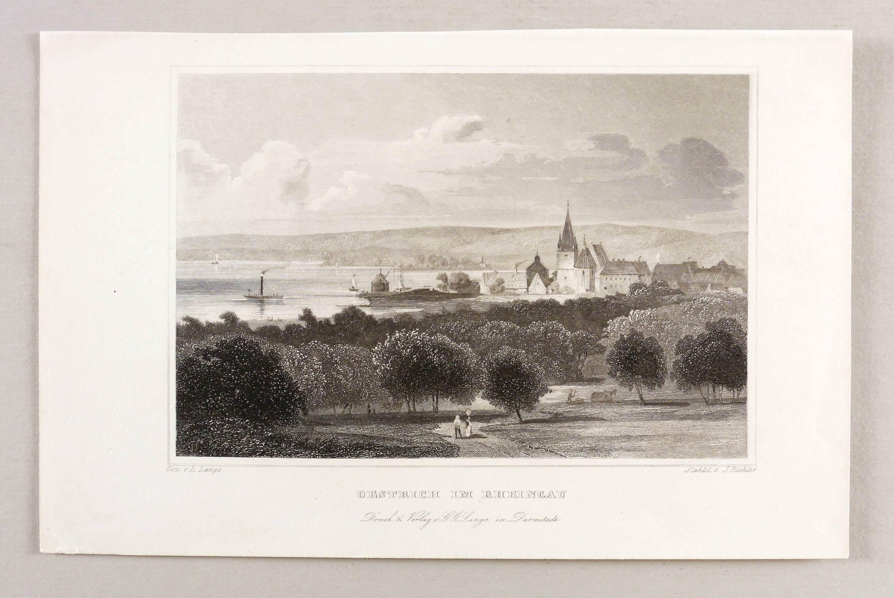 Rheingau-Taunus-KreisRheingauRhein (Fluss)Stadtansichten HessenStahlstich / Stahlstiche (Drucktechnik)St. Martin (Oestrich)