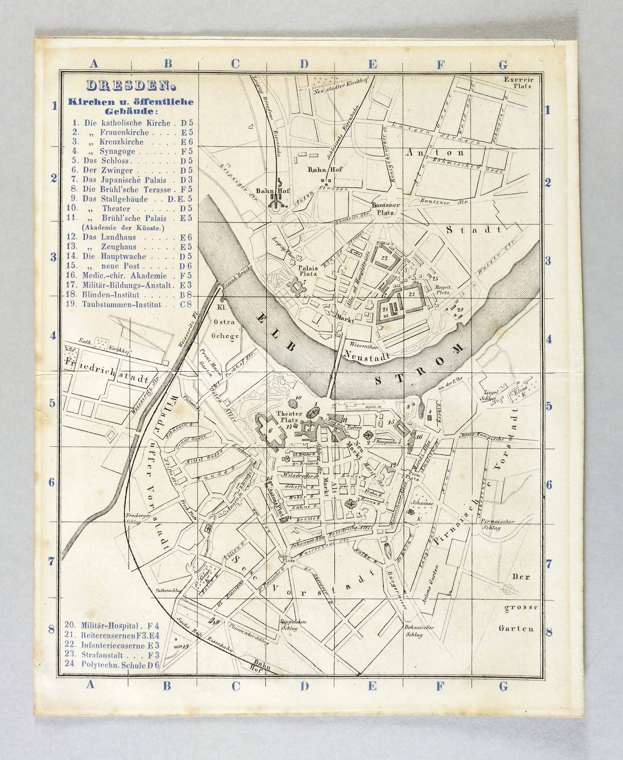 Titel mit Legende 1-24. links oben. – Blatt mit mittiger Bugfalte. Guter Zustand.