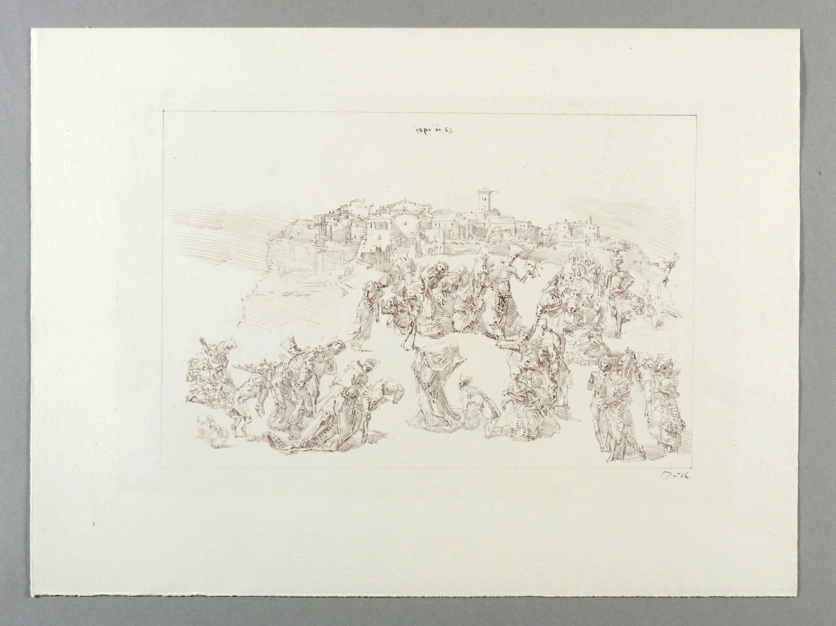 1981. Lithografie / Kreidelithografie, in Braun, auf hellem Büttenpapier. – Von Werner Tübke. – 24,5 x 36,7 cm (Darstellung / Einfassungslinie), 39,5 x 53 cm (Blatt).