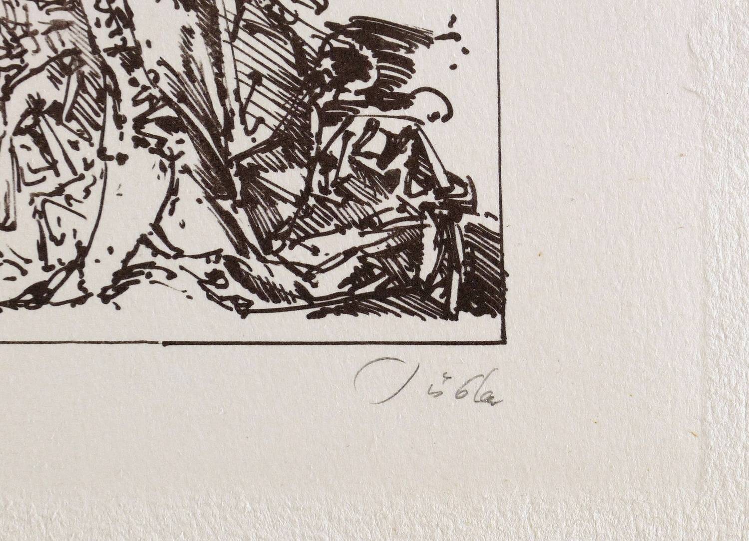 1983. Zinkografie / Federlithografie, in Braunviolett, auf hellem Hahnemühle-Bütten. – Originale Künstlergrafik, von Werner Tübke. – Auflage Exemplar Nr. 4/100. – 27,8 x 38,1 cm (Darstellung), 40 x 54 cm (Blatt).