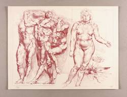 1969. Lithografie / Kreidelithografie, in Rötelton, auf festem hellgelbem Velinkarton. – Originale Künstlergrafik, von Werner Tübke. – Auflage Exemplar Nr. 43/50. – 34,2 x 43,6 cm (Darstellung), 36 x 48 cm (Blatt).