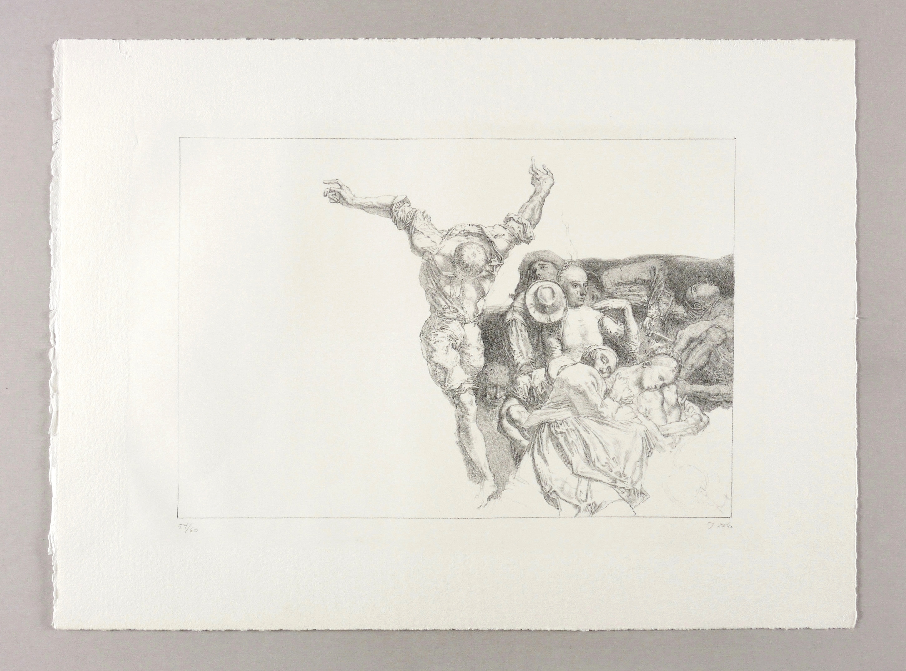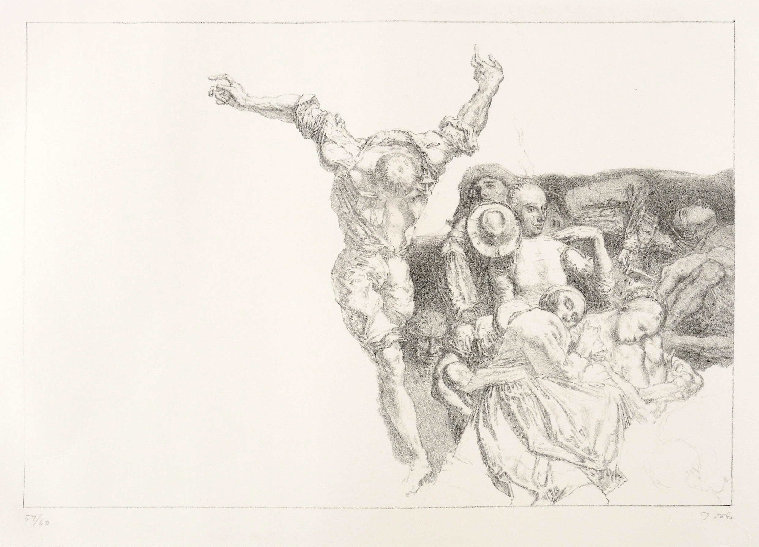 1989. Lithografie / Kreidelithografie, in Schwarz, auf kräftigem hellchamois Hahnemühle. – Originale Künstlergrafik, von Werner Tübke. – Auflage Exemplar Nr. 54/60. – 25,5 x 37,1 cm (Darstellung / Einfassungslinie), 40 x 54 cm (Blatt).