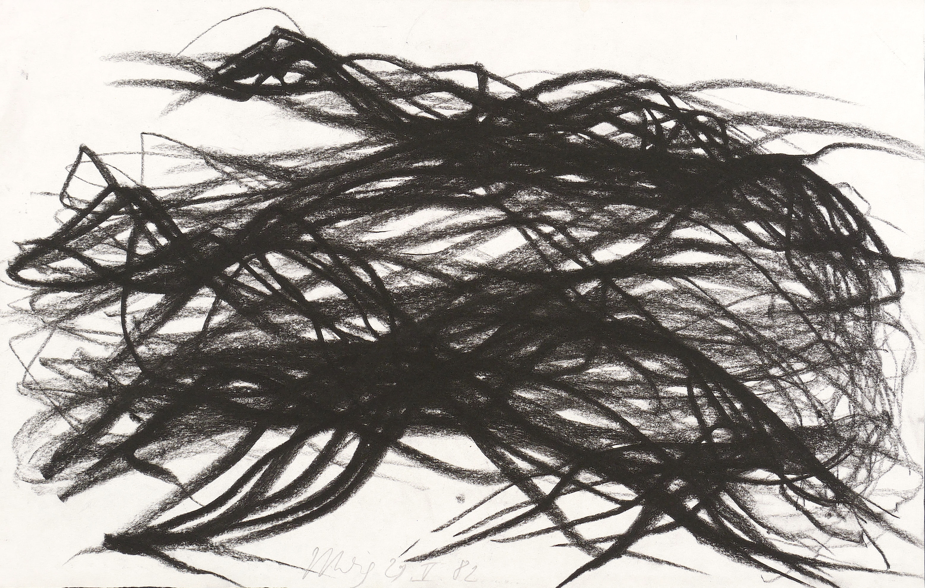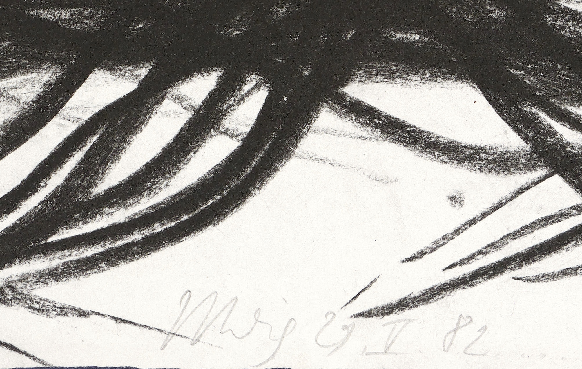 1982. Zeichnung / Fettkreide, in Schwarz, auf weißem Papier. – Originale Künstlergrafik, von Max Uhlig. – Unikat. – 22,5 x 35,4 cm (Blatt).
