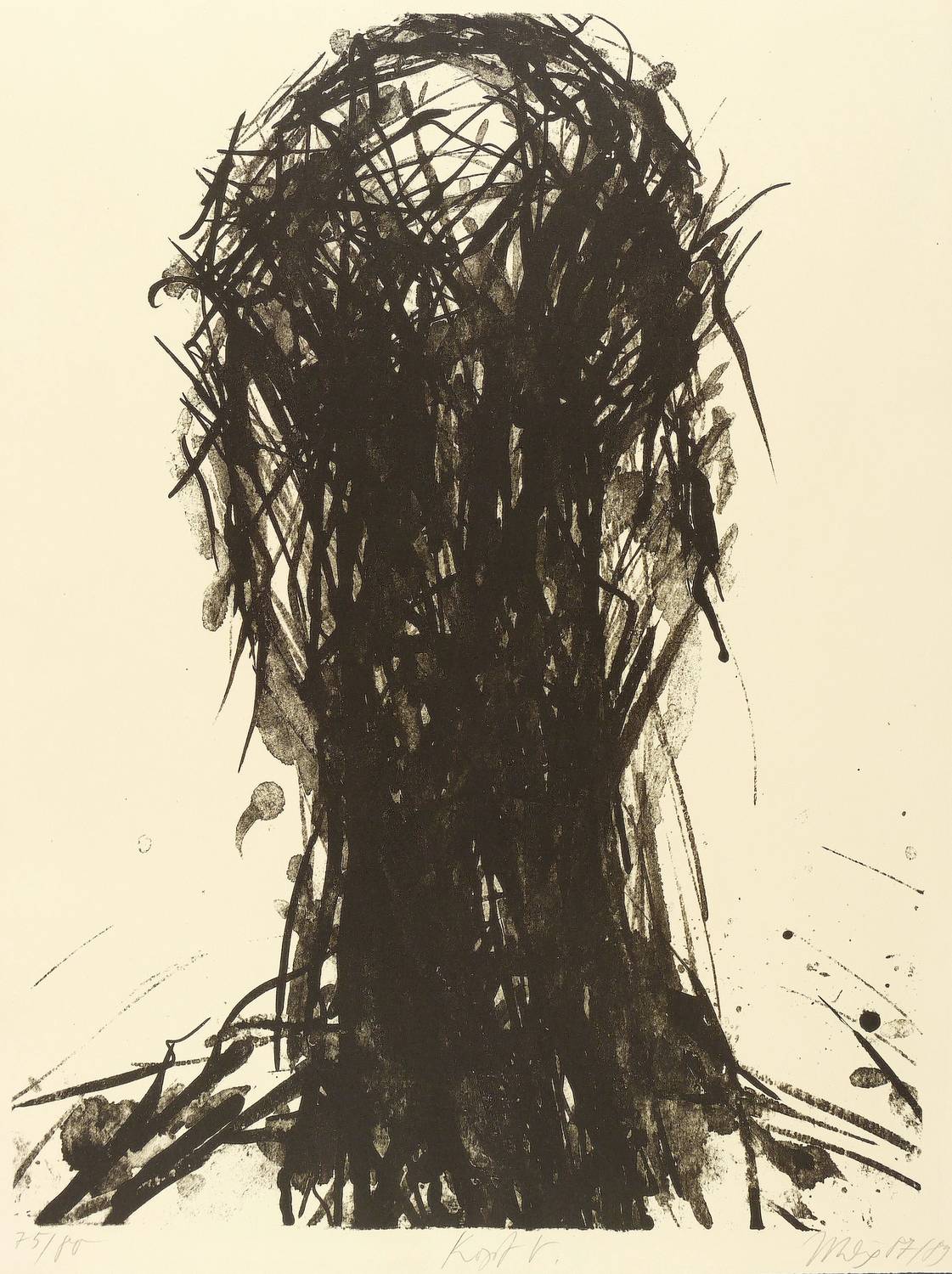 1987/1989. Lithografie / Pinsellithografie, in Schwarz, auf chamois Büttenpapier. – Originale Künstlergrafik, von Max Uhlig. – Auflage Exemplar Nr. 75/80. – 55,9 x 41,6 cm (Darstellung / Druckbild), 59 x 44,5 cm (Blatt).