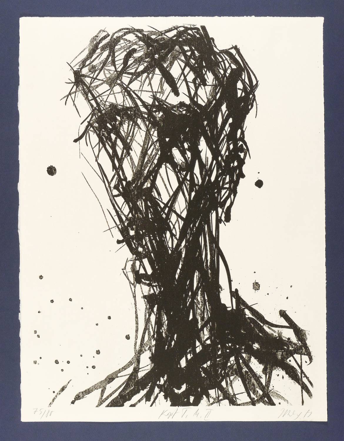 1989. Lithografie / Pinsellithografie, in Schwarz, auf hellchamois Büttenpapier. – Originale Künstlergrafik, von Max Uhlig. – Auflage Exemplar Nr. 75/80. – 55,7 x 41,2 cm (Darstellung / Druckbild), 59 x 44,5 cm (Blatt).