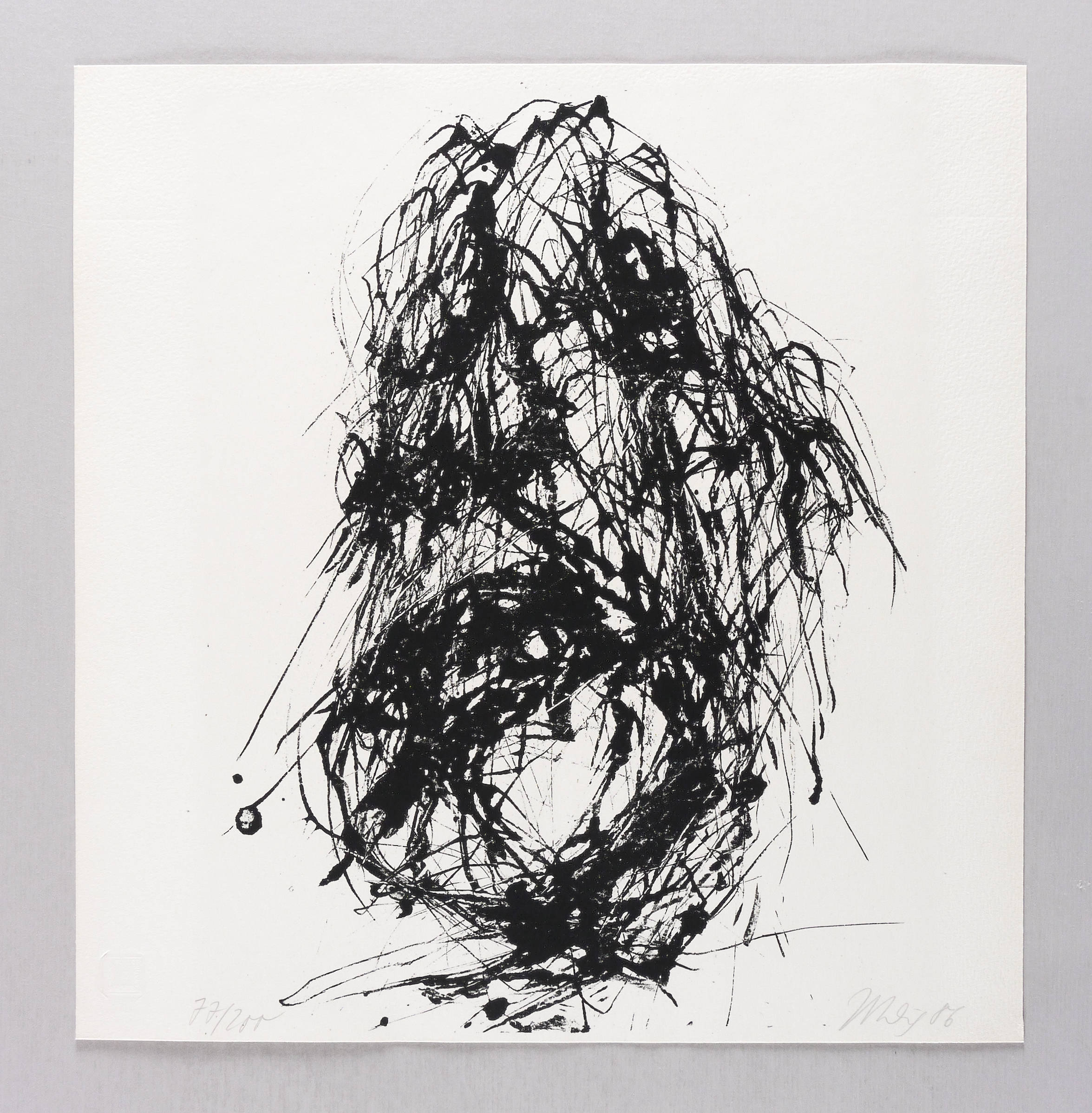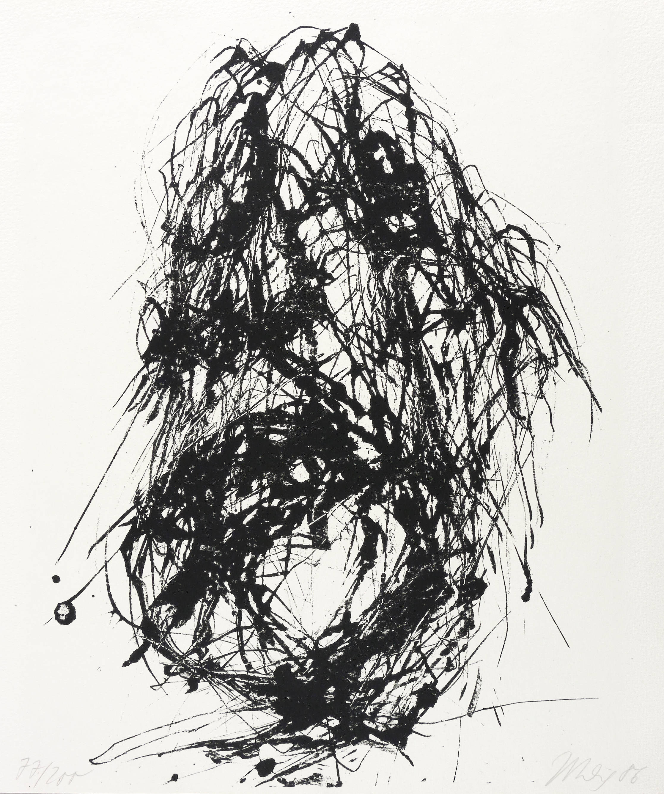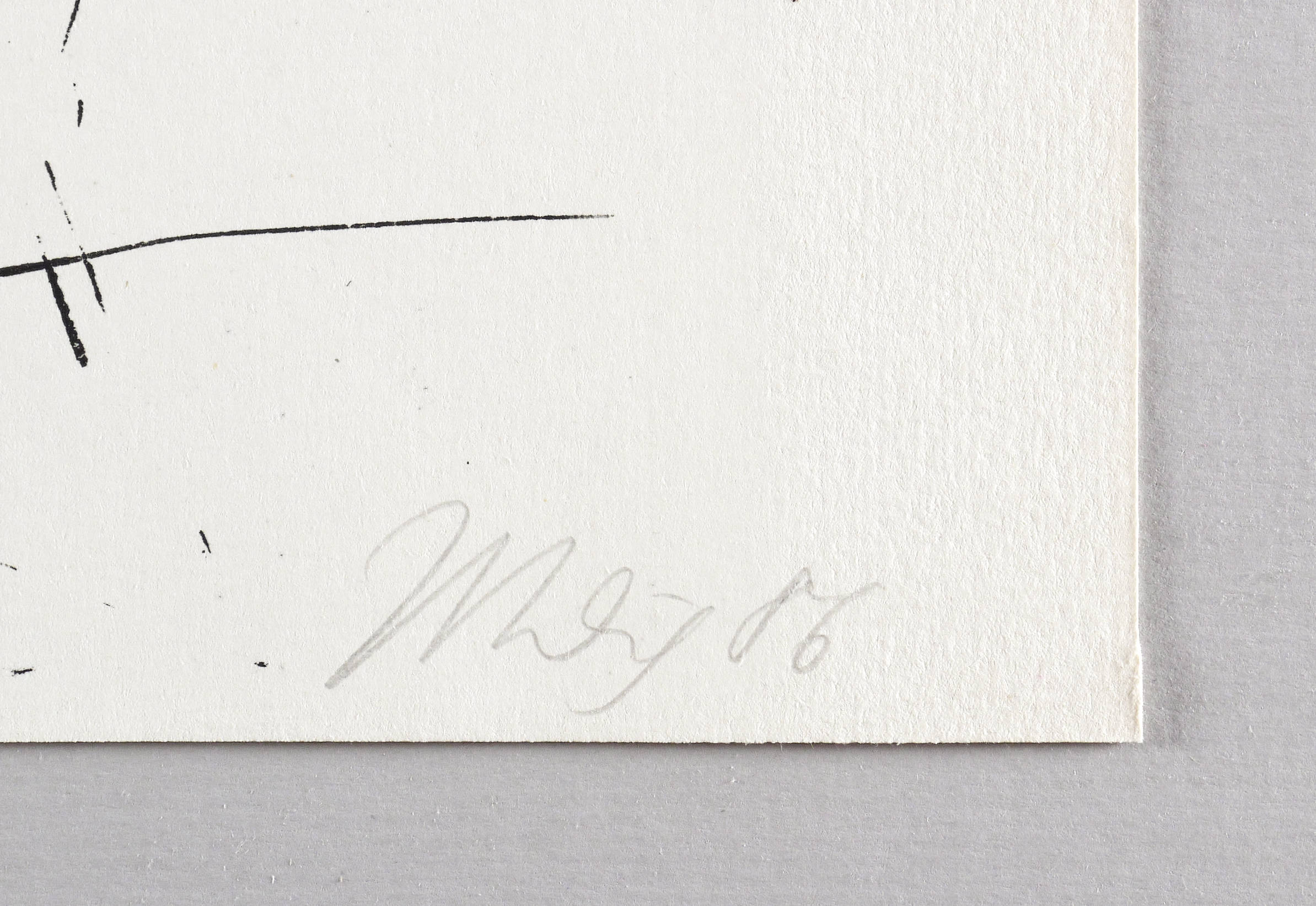 1986. Lithografie / Pinsellithografie, in Schwarz, auf hartem hellgelbem Velinkarton. – Originale Künstlergrafik, von Max Uhlig. – Auflage Exemplar Nr. 77/200. – 35,2 x 26,5 cm (Darstellung), 37 x 36 cm (Blatt).