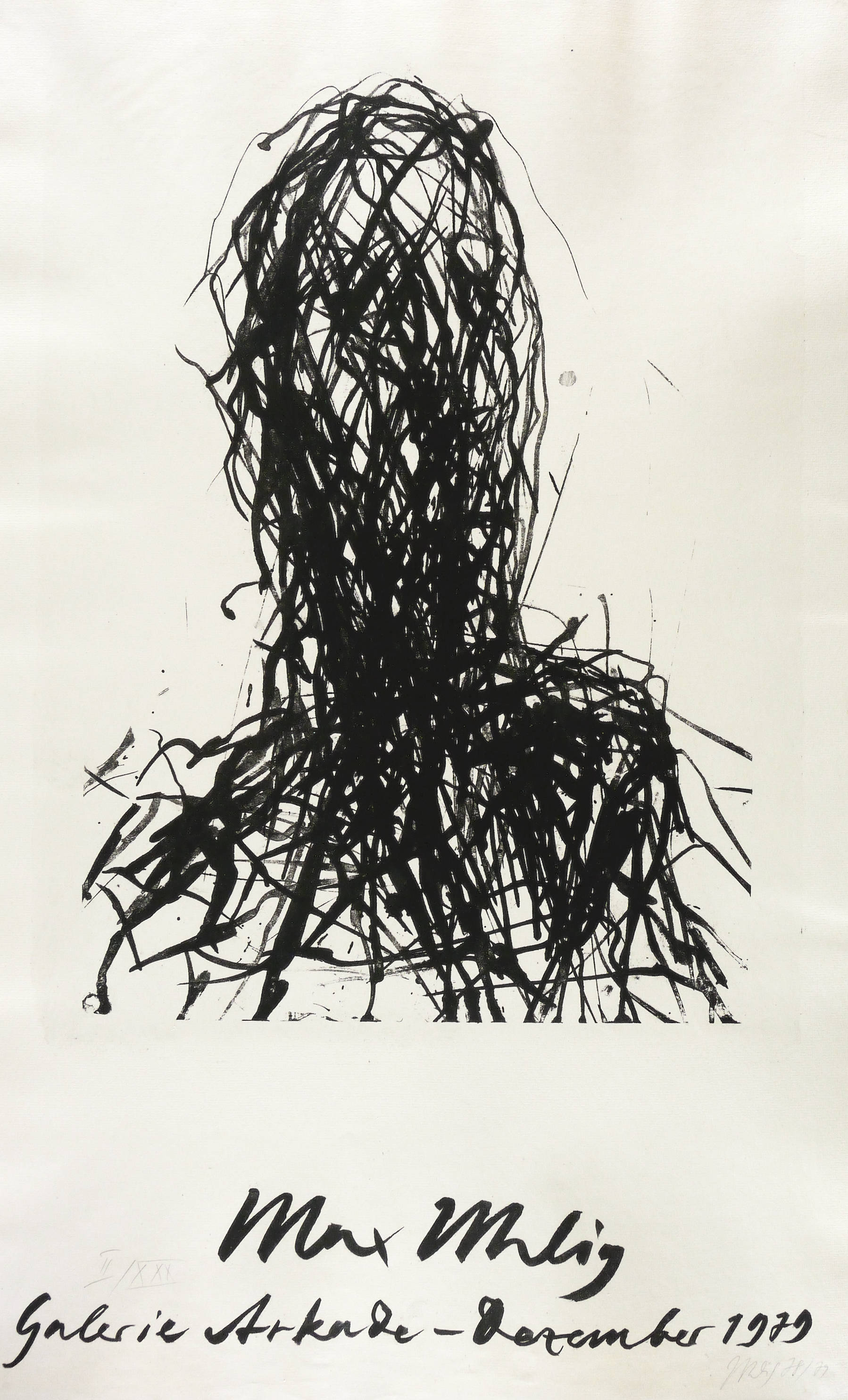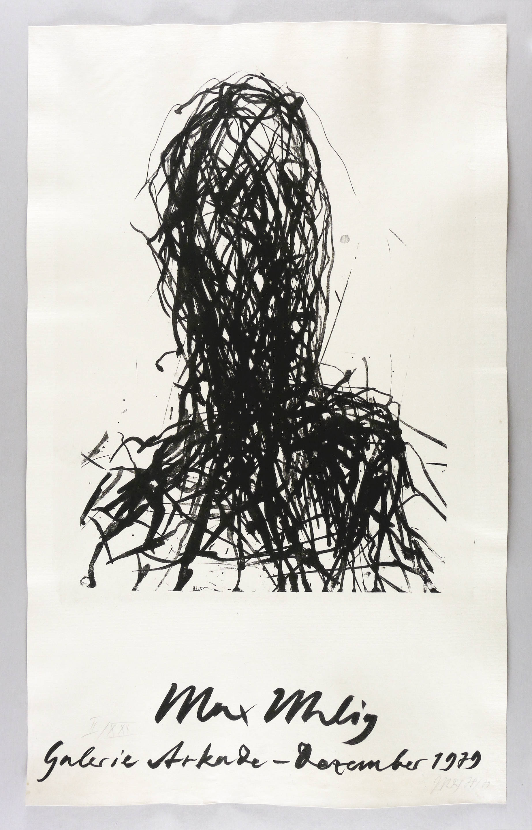 1978/1979. Lithografie / Pinsellithografie, in Schwarz, auf festem hellchamois Maschinenbütten. – Originales Künstlerplakat, von Max Uhlig. – Auflage Exemplar Nr. II/XXX. – 59,3 x 41,6 cm (Darstellung / ohne Schrift), 88 x 55 cm (Blatt).
