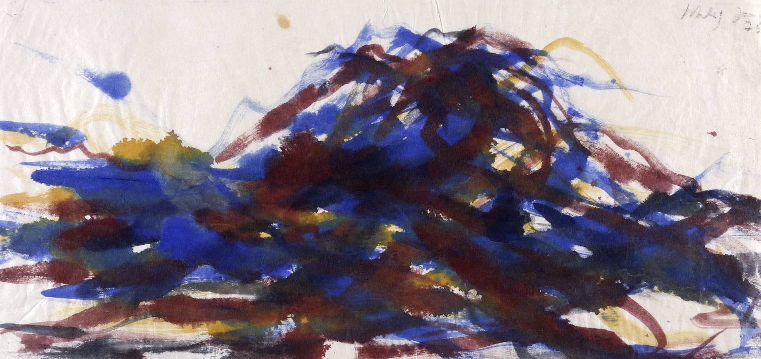 1975. Aquarell, auf hellchamois Simili-Japan. – Originale Künstlergrafik, von Max Uhlig. – Unikat. – 20,5 x 43,0 cm (Darstellung / Blatt).