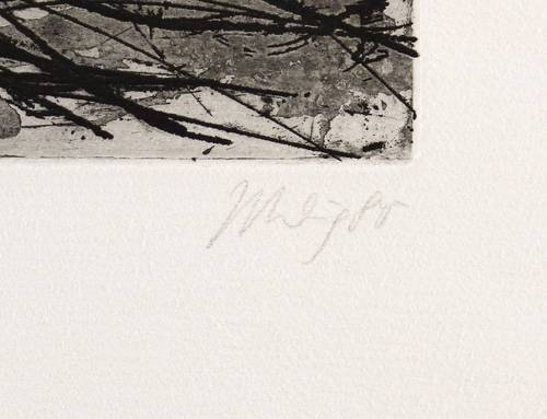 Rechts unten in Bleistift signiert und datiert: ″Uhlig 85″. Links Auflagenbezeichnung: ″5/15″ Im unteren Blattrand links Titel: ″Feld und Waldstück (Tempelberg)″. Wasserzeichen der Hahnemühle. – Tadelloses Exemplar. Sehr guter Zustand.