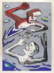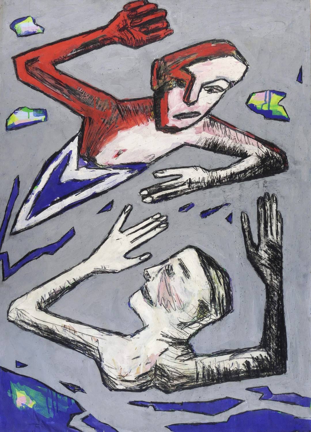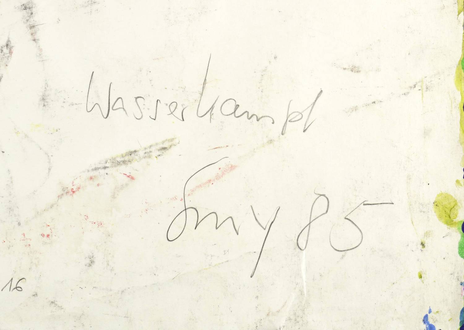 Verso in Bleistift signiert und datiert: ″Smy 85″. Dazu betitelt: ″Wasserkampf″. – Sehr guter Zustand.