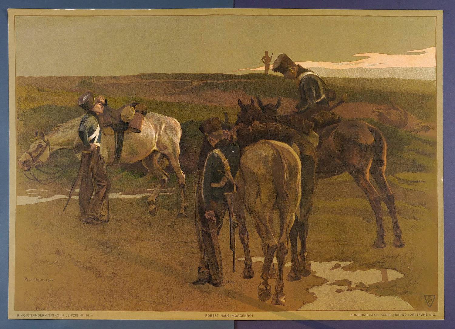 Haug, Robert von. – „Morgenrot (Rastende preußische Dragoner)”.