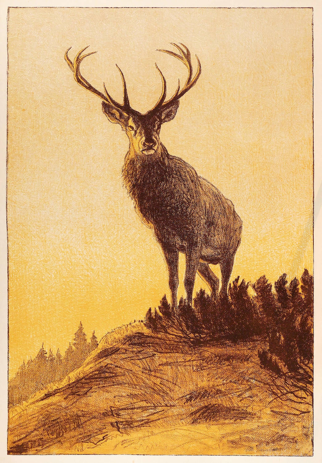 Fikentscher, Otto. – „Hirsch auf einer Anhöhe”.