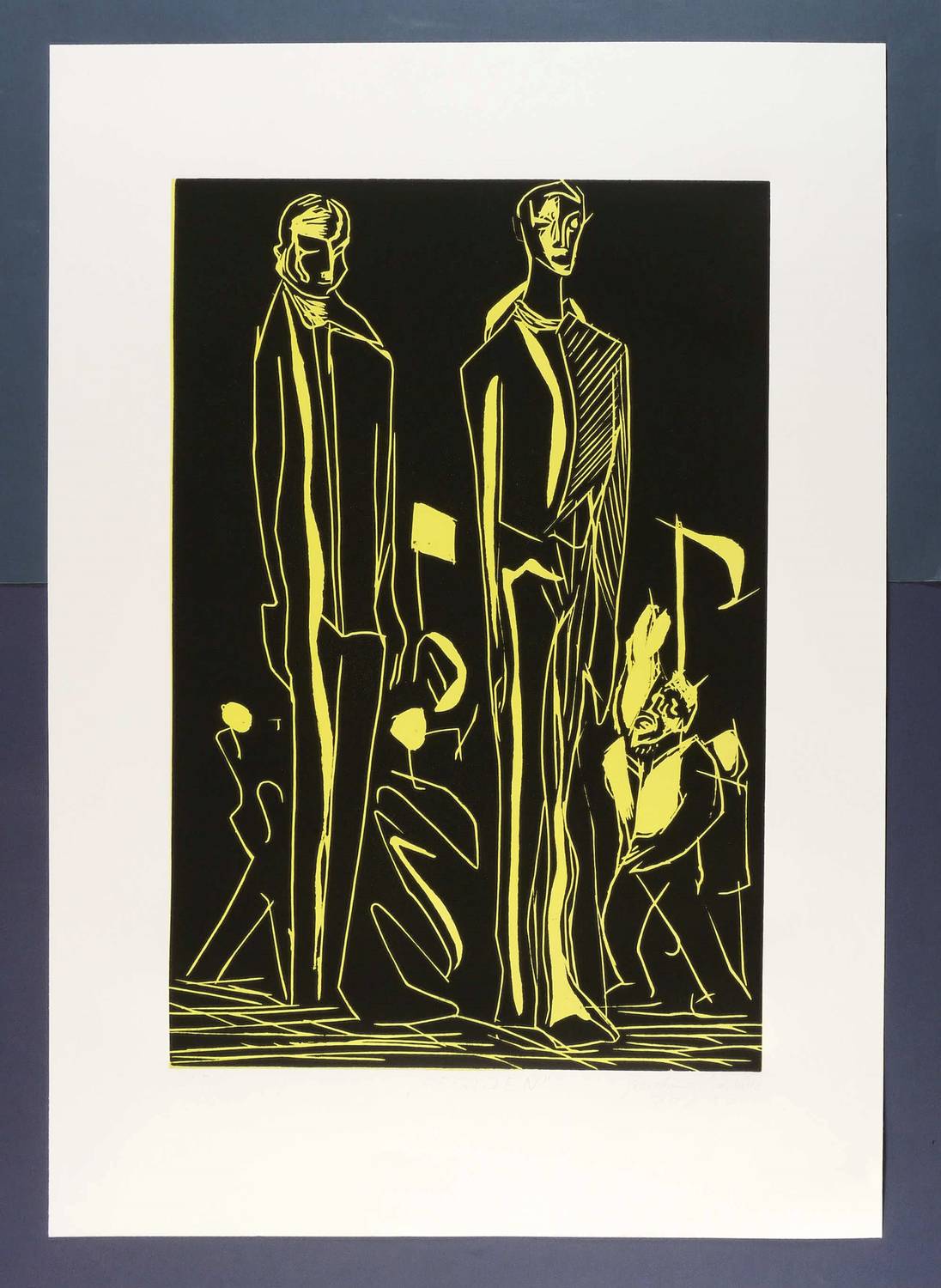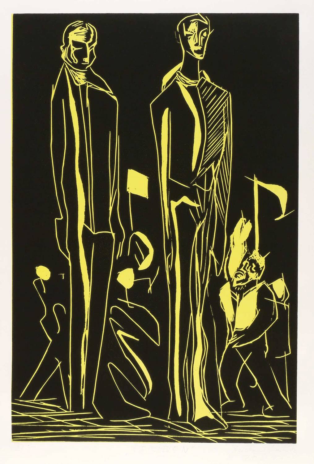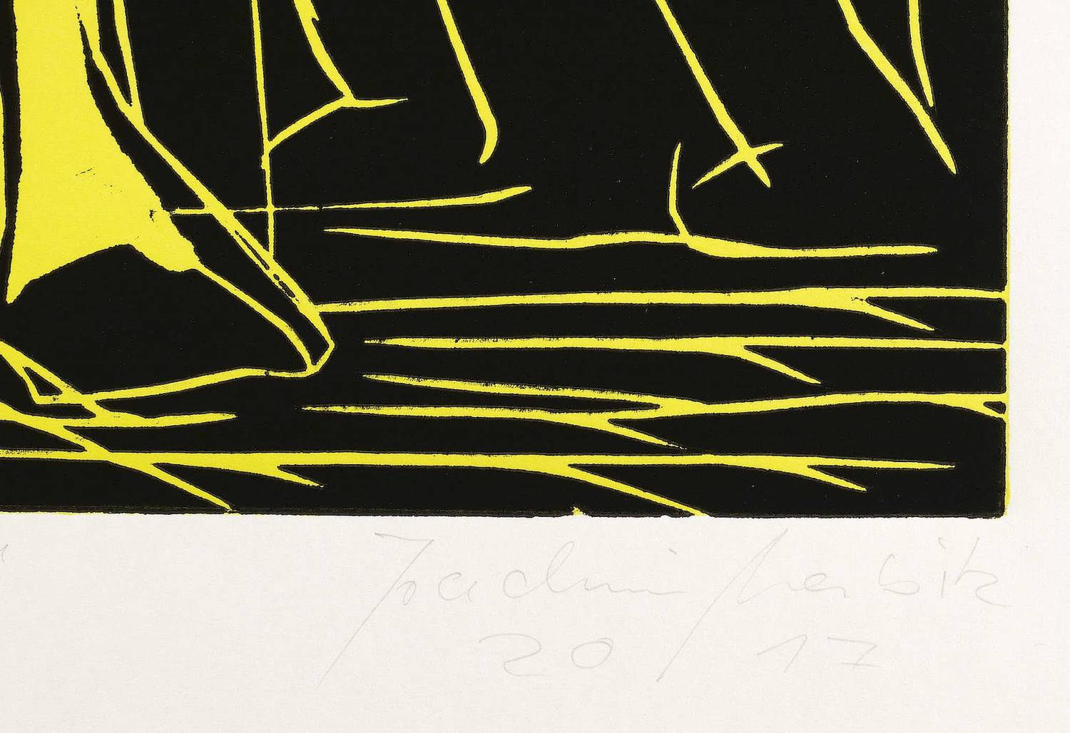 2017. Farbzinkschnitt, in Gelb & Schwarz, auf weißlichem Büttenkarton. – Von Joachim Merbitz. – Auflage Exemplar Nr. 2/5. – 74,7 x 49,9 cm (Darstellung / Platte), 70 x 100 cm (Blatt).