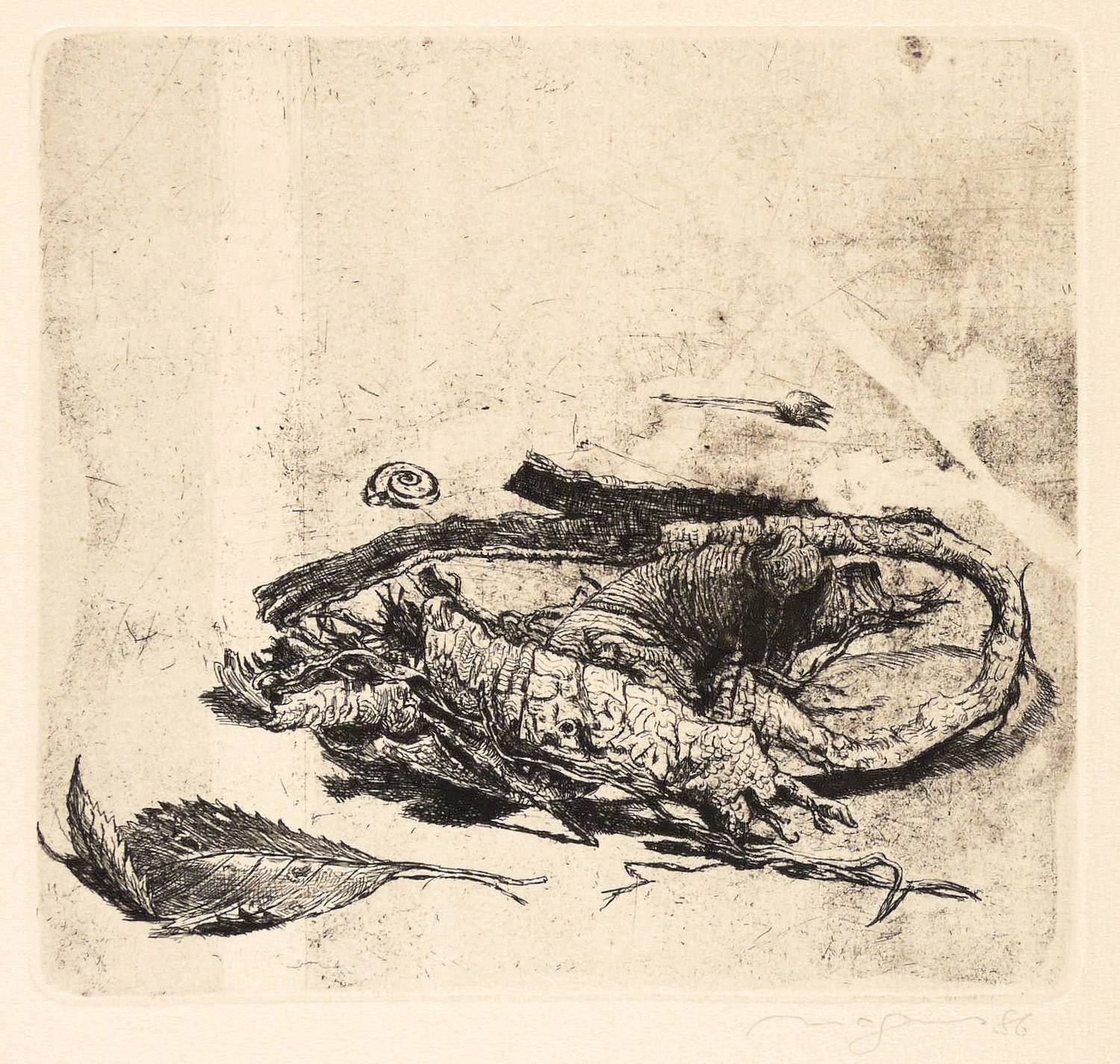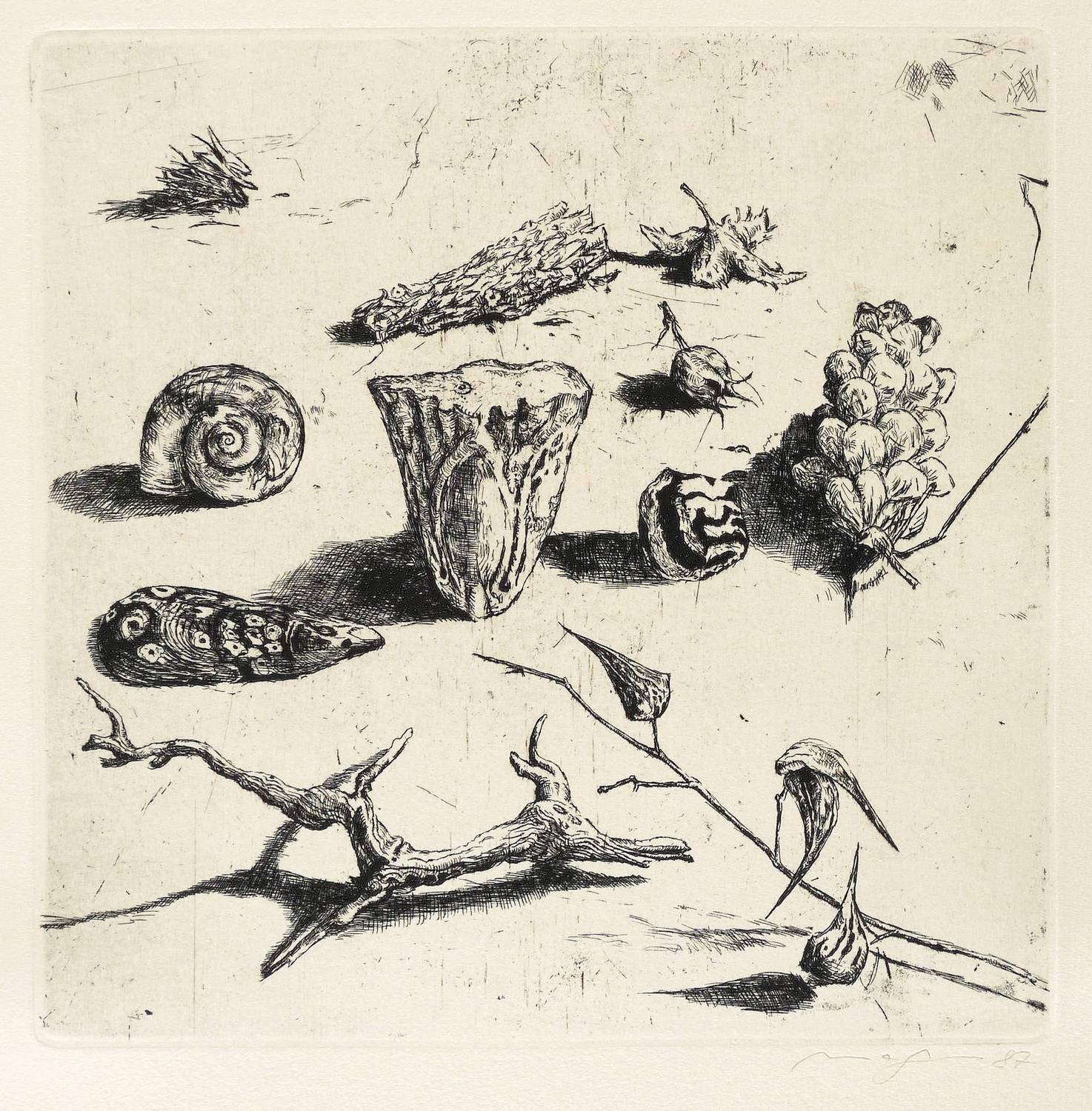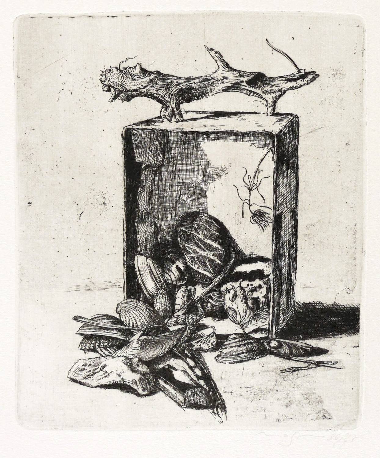 Aus: Klaus Magnus, Stillleben (Berlin: Berliner Graphikpresse 1987). – Jeweils rechts unten in Bleistift signiert und datiert: ″Magnus 87″. Impressum von Hand nummeriert. – Beinhaltend die 10 Radierungen, 1 Titelblatt, 1 Begleittext von Peter Röske sowie 1 Blatt Impressum. – Inklusive Mappe tadellos erhalten. Sehr guter Zustand.