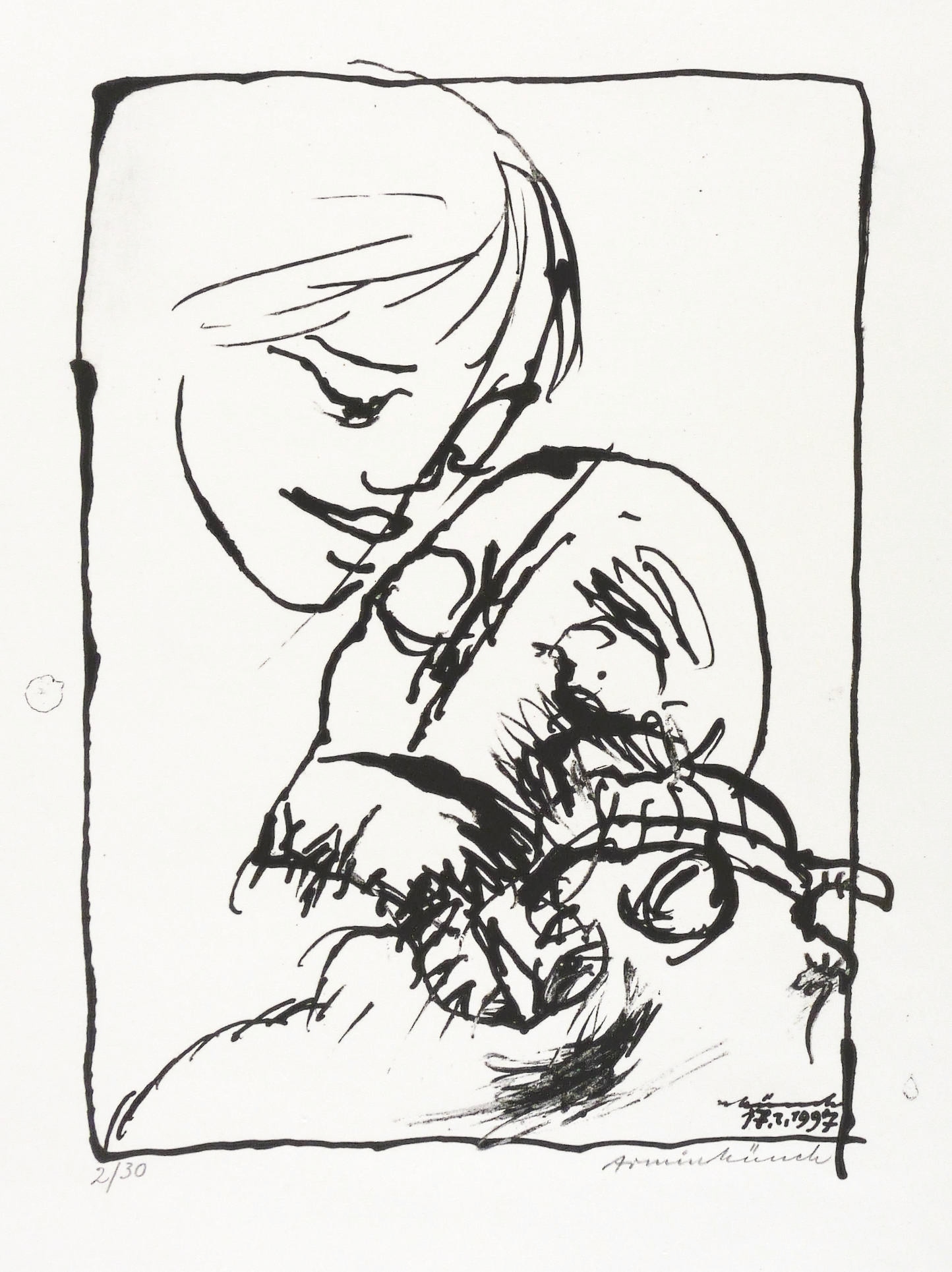 Armin Münch (1930 Rabenau - 2013 Rostock). Deutscher Grafiker und Buchillustrator. Nach dem Zweiten Weltkrieg als grafischer Zeichner beim Sachsenverlag Dresden tätig. 1950-55 Studium an der Hochschule für Bildende Künste Dresden (HfBK), Diplom "Die Fischer vom Kap Arkona". 1955 Umzug nach Rostock. 1958-60 Meisterschüler für Grafik an der Deutschen Akademie der Künste Ost-Berlin bei Hans Theo Richter, Max Schwimmer und Josef Hegenbarth. 1960-70 freischaffender Grafiker und Zeichner in Rostock. 1970 Nationalpreis der DDR. Seitdem Dozent an der Kunsthochschule Berlin-Weißensee. 1976-91 Professor an der Universität Greifswald. 1996-2000 Lehrauftrag an der Universität Rostock sowie seit 1999 in der Prüfungskommission der privaten Kunsthochschule Bochum (IBKK). Mitglied des Kunstvereins Rostock.