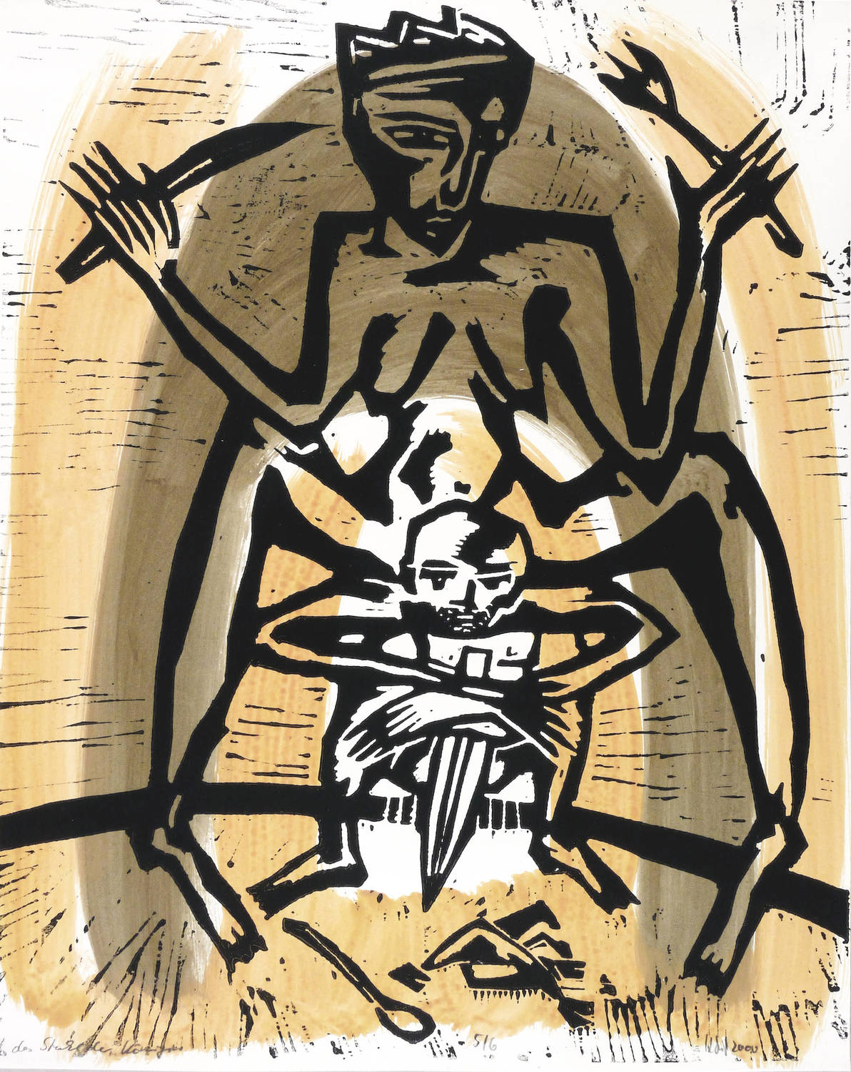 2000. Mischtechnik / Tempera & Holzschnitt, 7 Blatt, auf festem hellchamois Velinkarton. – Mappenwerk, von Klaus Süß. – Auflage Exemplar Nr. 5/6. – 56,5 x 46,0 cm (Kassette), 51,5 x 41,7 cm (Blätter).