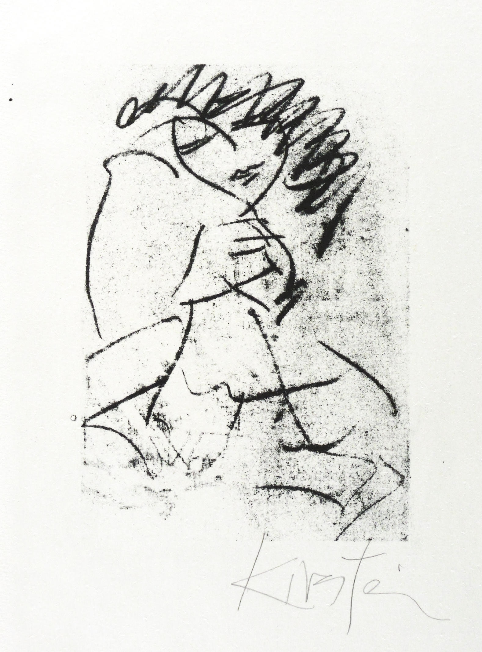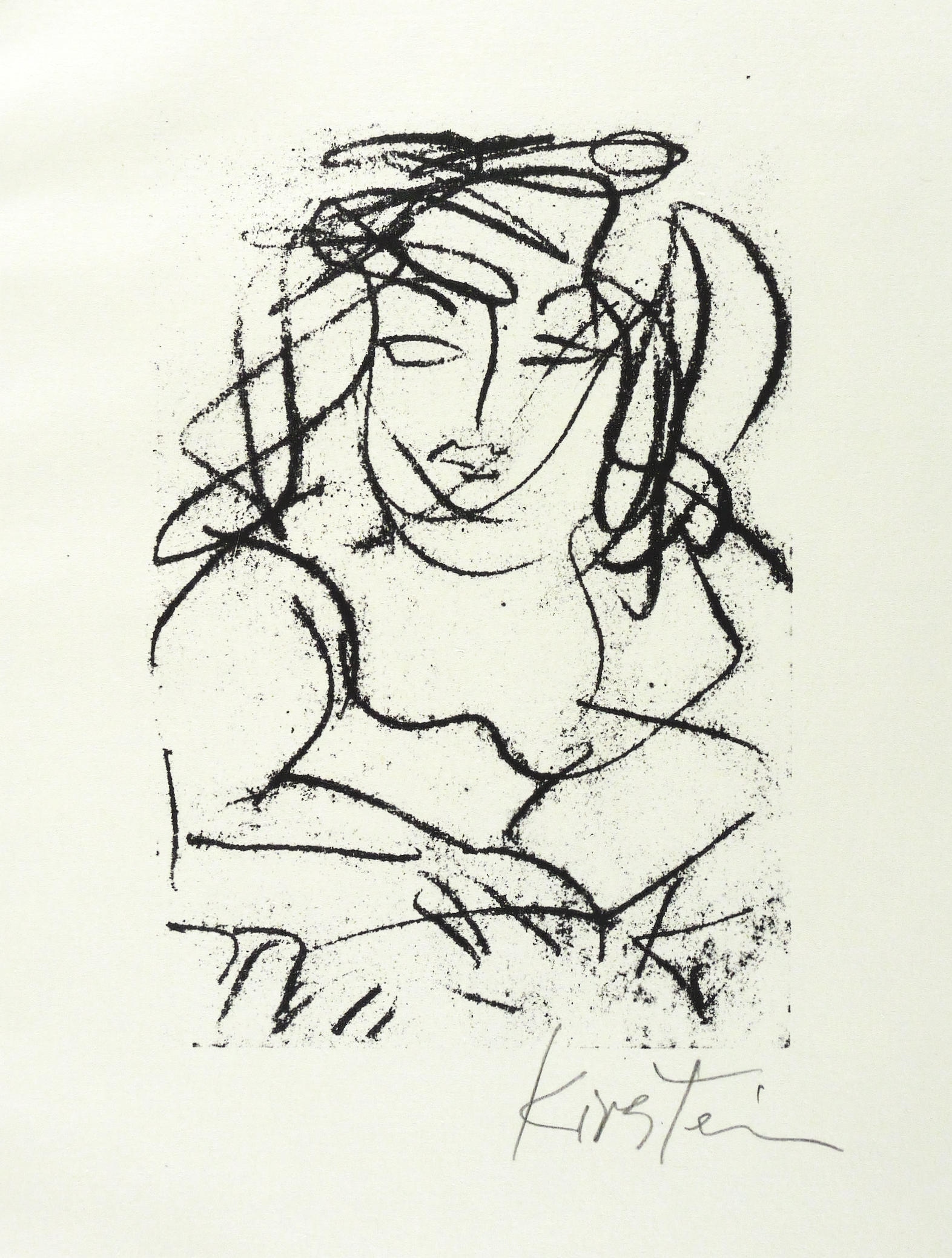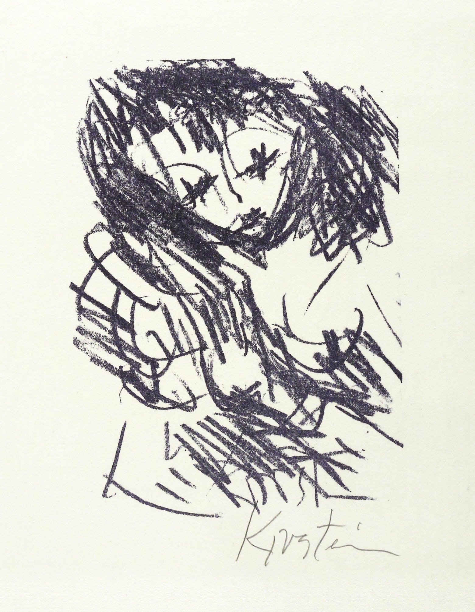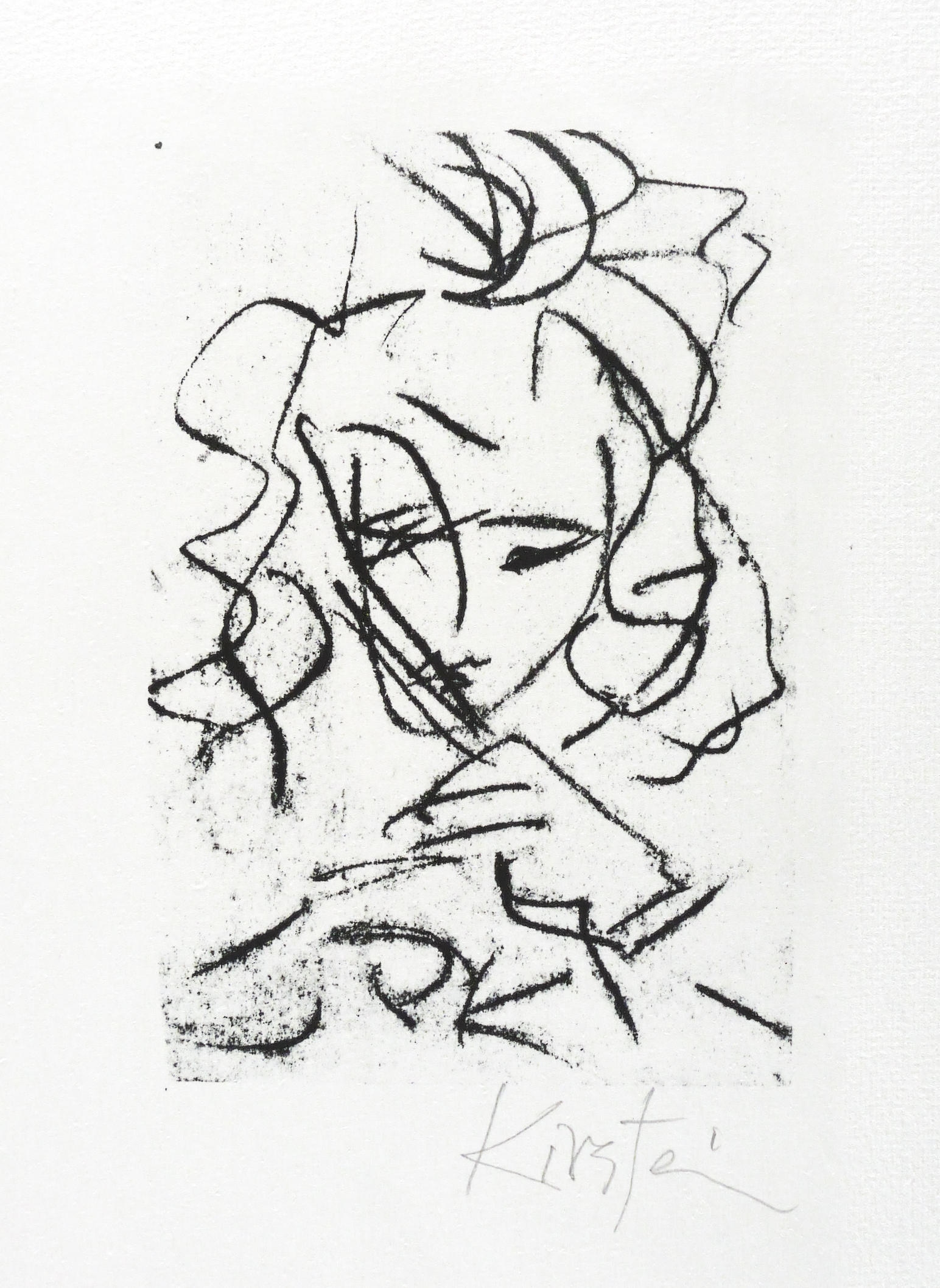 Aus: Helmut Schmidt-Kirstein, Mädchen. 10 Lithografien (Ravensburg: Galerie Döbele 1982). – Jedes Blatt rechts unten in Bleistift signiert. Im Blattrand unten zentral Titel. Links Auflagenbezeichnung. Im Impressum Auflagenbezeichnung. – Enthaltend die Lithografien: Herzgesicht, Sitzende, Weinende, Mit Sternenaugen, Mond im Haar, Ursula, Der Strohhalm, Juno, In sich versunken und Petit Monique. – Vollständige und sehr gut erhalten Grafik-Kassette. Schönes Exemplar. Sehr guter Zustand.