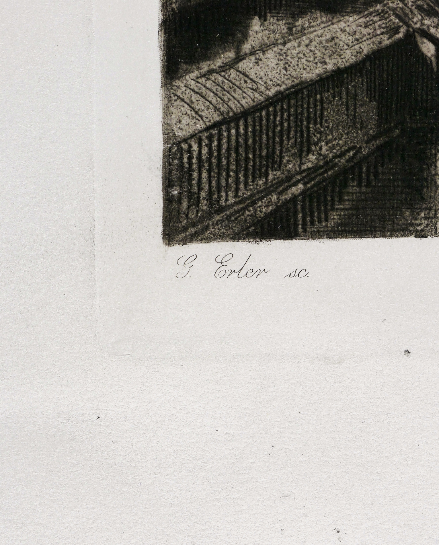 Georg Erler (1871 Dresden - 1950 Bad Reichenhall). Deutscher Maler, Grafiker und Radierer. 1891-94 Besuch der Dresdner Kunstgewerbeschule. 1894-98 Studium an der dortigen Kunstakademie bei Gotthardt Kuehl und Hugo Bürkner. 1897 Studienreise nach Paris, 1898 nach München und Rom. Ab 1898 wieder in Dresden. 1901 zweijähriges Rom-Stipendium der Kunstakademie für die großformatige Radierung "Zwischen der Arbeit". 1902 Gründung der Künstlergruppe "Die Elbier" zusammen mit Ferdinand Dorsch und anderen Schülern von Gotthardt Kuehl. 1913-37 Professor für figürliches Zeichnen an der Dresdner Kunstgewerbeschule. Ab 1900 entstanden zahlreiche Karikaturen, die 1932 in einer Ausstellung im Kunstgewerbemuseum gewürdigt wurden. Er radierte zahlreiche Stadtansichten, Landschaften und Aktdarstellungen. Untergang eines Großteils des Werks beim Bombenangriff auf Dresden am 13. Februar 1945. Die letzten Lebensjahre verbrachte er in Ainring in Oberbayern.