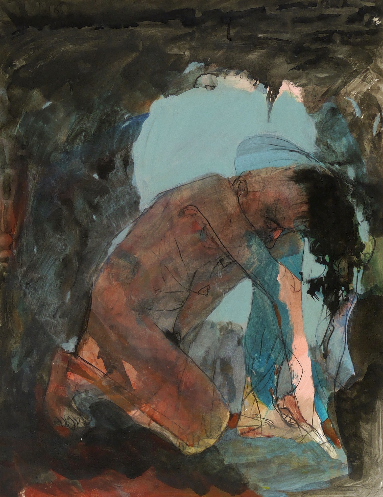 1991. Mischtechnik / Kohle, Aquarell & Tusche, auf festem weißem Karton. – Originale Künstlergrafik, von Gudrun Trendafilov. – Unikat. – 90,6 x 70,3 cm (Darstellung / Blatt).