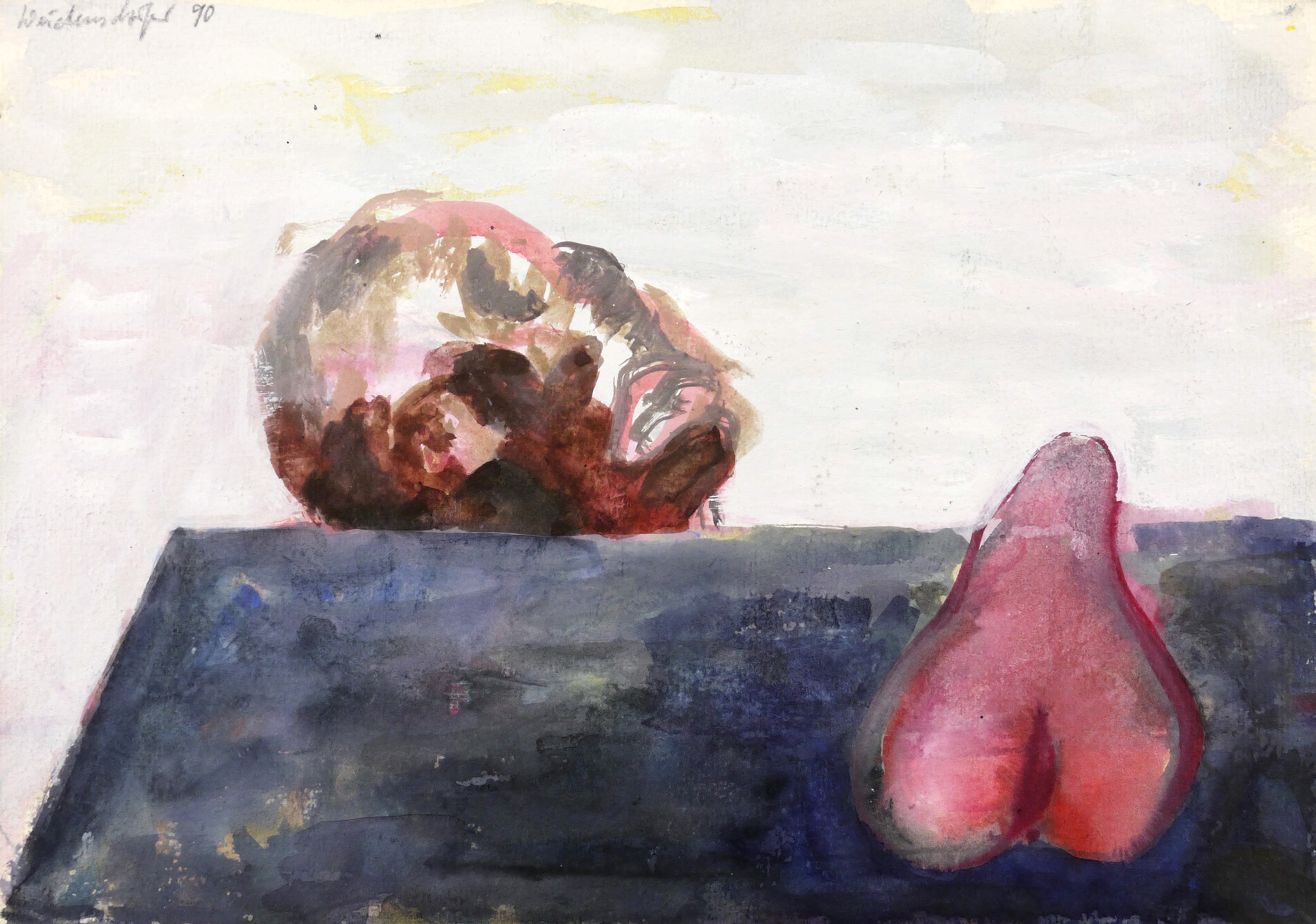 1990. Zeichnung / Gouache, auf Karton. – Originale Künstlergrafik, von Claus Weidensdorfer. – Unikat. – 20,5 x 29,5 cm (Darstellung / Blatt).