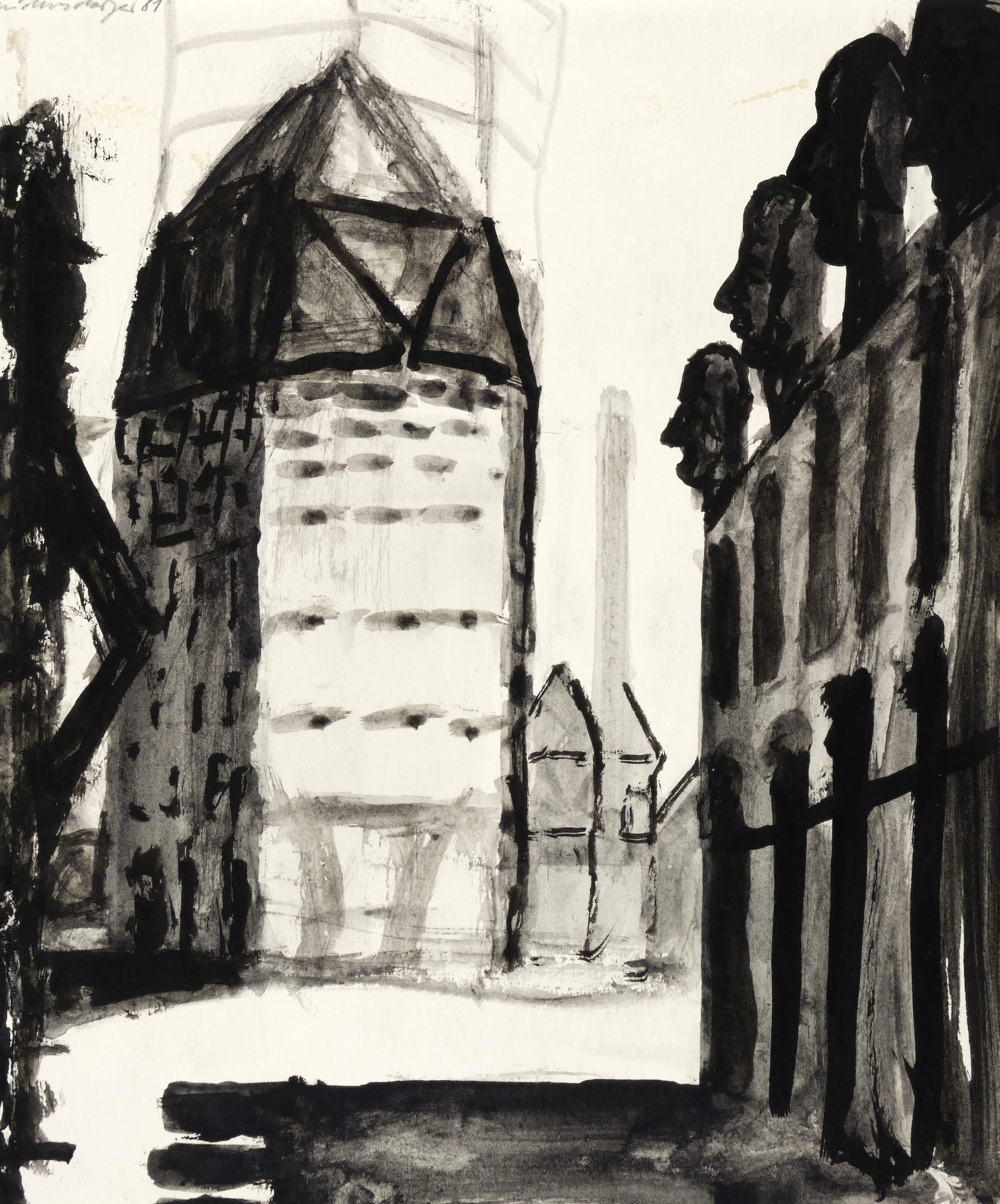 1981. Zeichnung / Feder- & Pinselzeichnung, in Tusche, auf Karton. – Originale Künstlergrafik, von Claus Weidensdorfer. – Unikat. – 24,0 x 21,0 cm (Darstellung / Blatt).