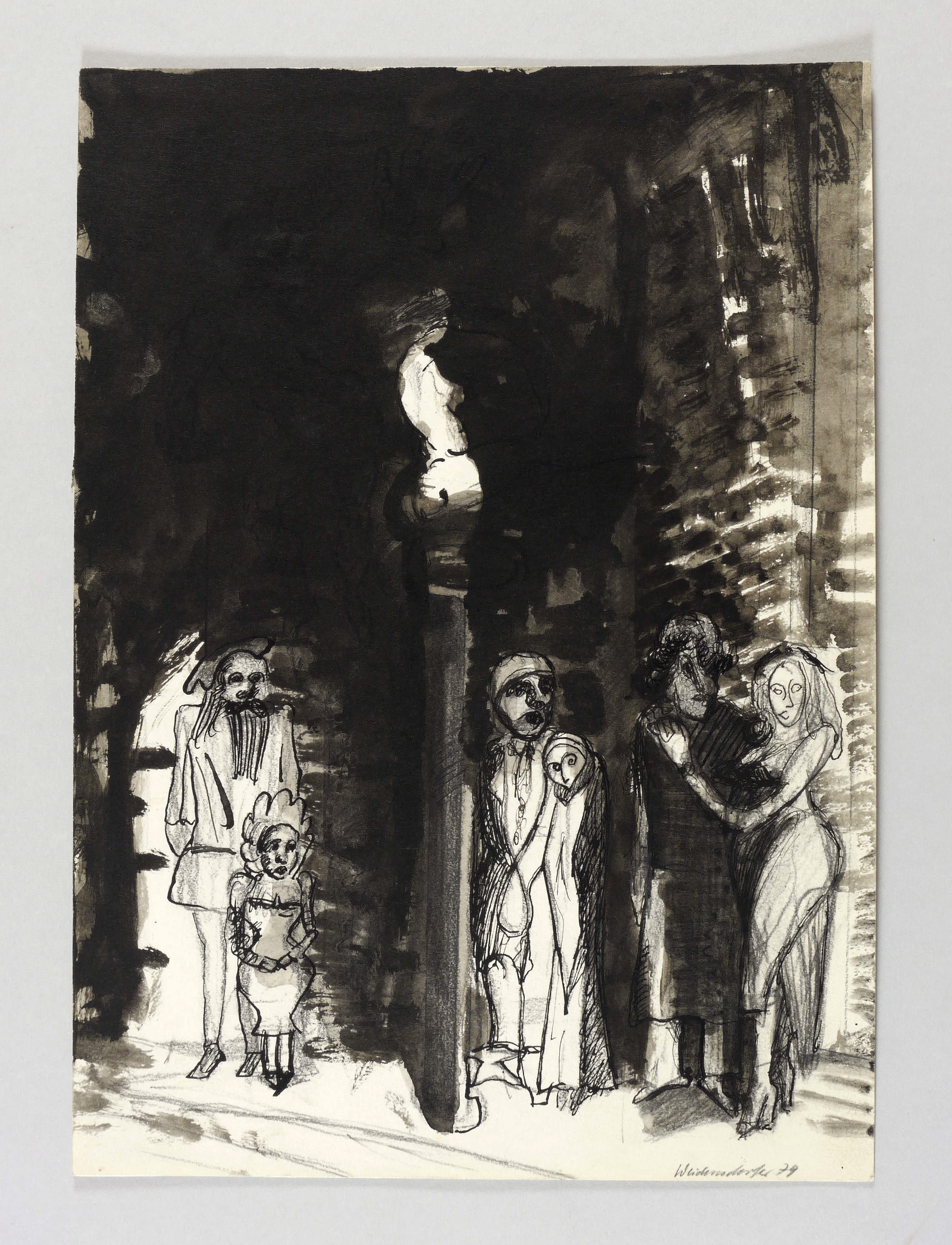 1979. Zeichnung / Feder- & Pinselzeichnung, in Tusche über Bleistift, auf Karton. – Originale Künstlergrafik, von Claus Weidensdorfer. – Unikat. – 31,5 x 22,5 cm (Darstellung / Blatt).