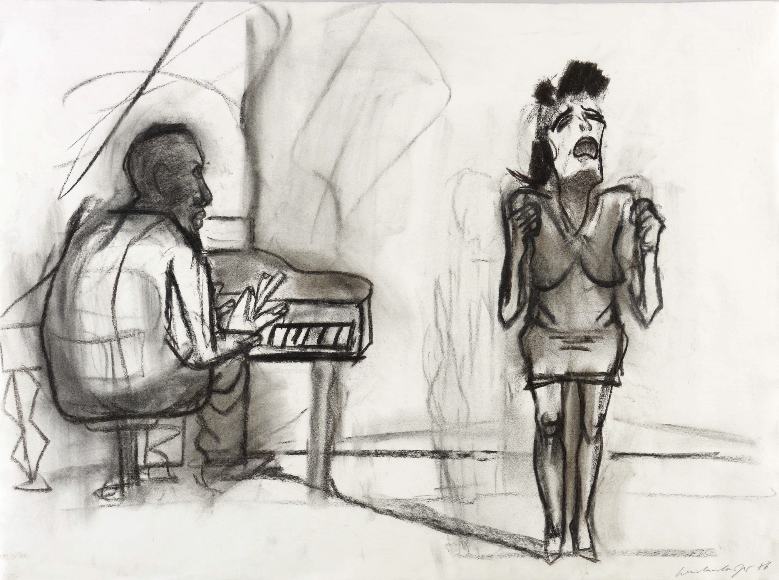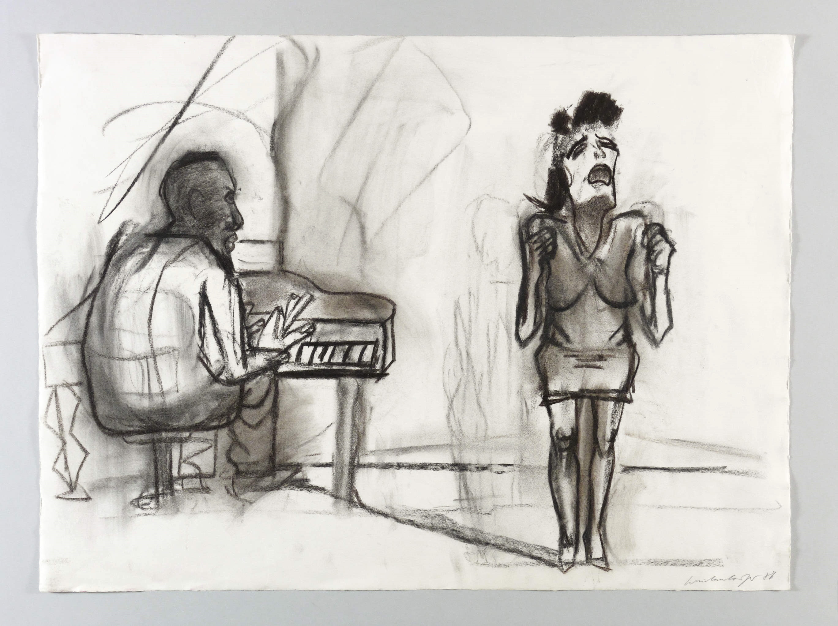 1988. Zeichnung / Kohlezeichnung, partiell gewischt, auf Büttenpapier. – Originale Künstlergrafik, von Claus Weidensdorfer. – Unikat. – 55,5 x 75,0 cm (Darstellung / Blatt).