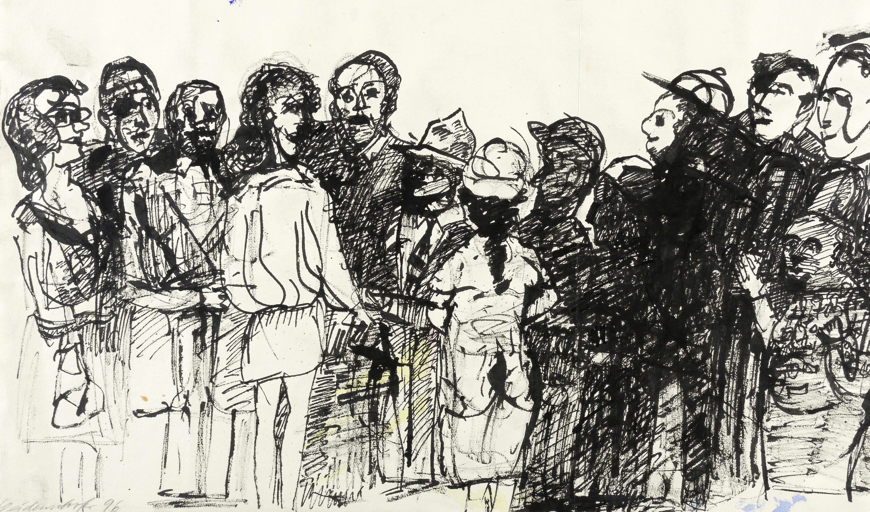 1996. Zeichnung / Federzeichnung, in schwarzer Tusche, auf Papier. – Originale Künstlergrafik, von Claus Weidensdorfer. – Unikat. – 40,0 x 59,0 cm (Darstellung / Blatt).