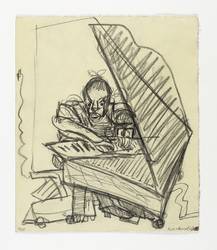 1988. Zeichnung / Bleistiftzeichnung, auf hellgelbem Büttenpapier. – Originale Künstlergrafik, von Claus Weidensdorfer. – Unikat. – 30,4 x 25,8 cm (Darstellung / Blatt).