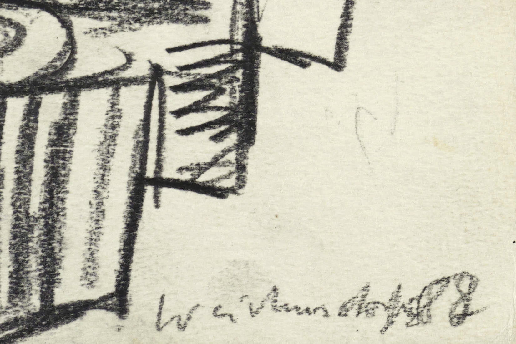 1988. Zeichnung / Bleistiftzeichnung, partiell gewischt, auf Karton. – Originale Künstlergrafik, von Claus Weidensdorfer. – Unikat. – 23,0 x 39,5 cm (Darstellung / Blatt).