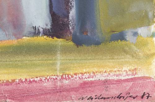 1987. Zeichnung / Gouache, auf Karton. – Originale Künstlergrafik, von Claus Weidensdorfer. – Unikat. – 39,0 x 52,0 cm (Darstellung / Blatt).