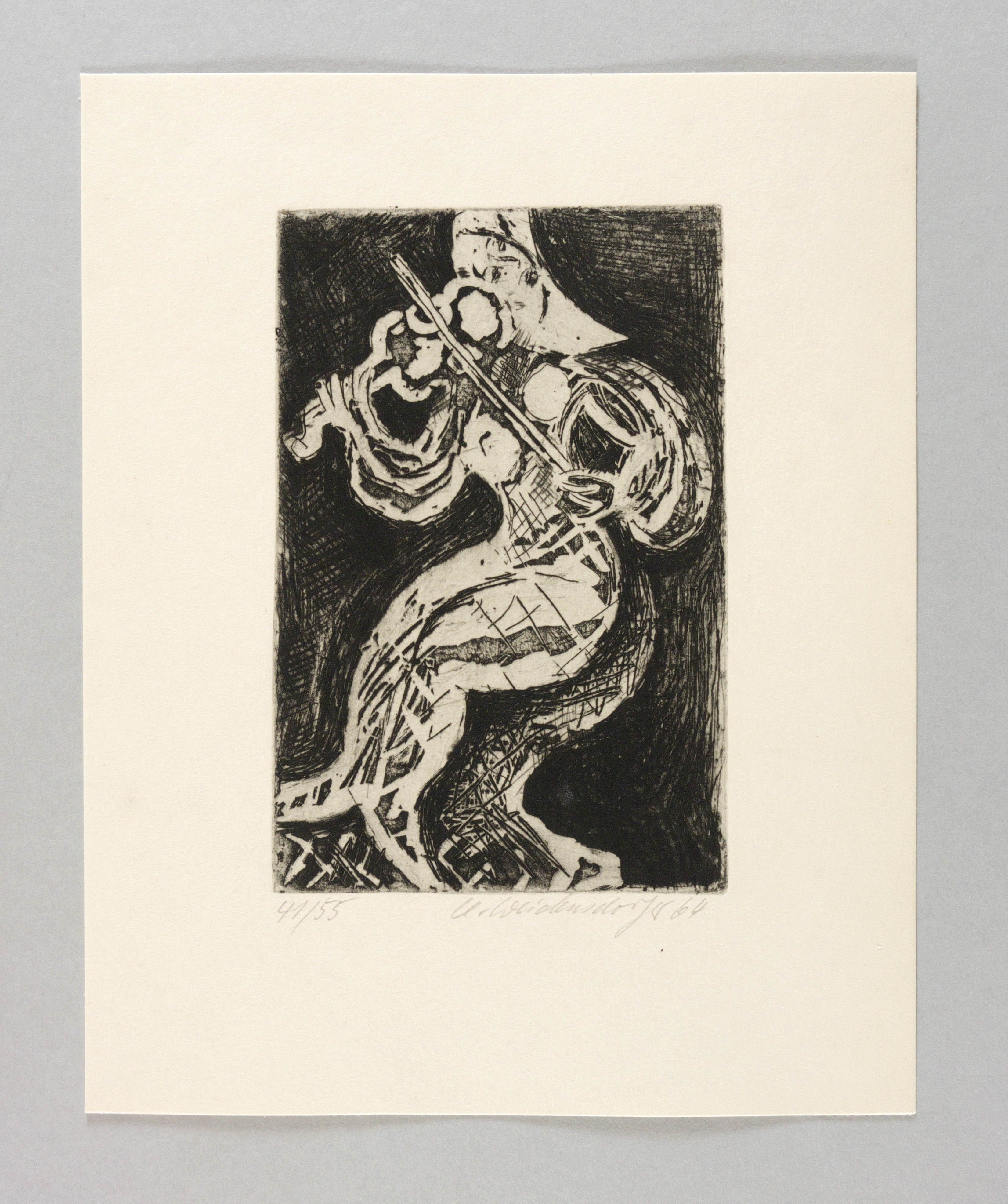 1964. Radierung / Strichätzung & Aquatinta, in Schwarz, auf gelblichem Karton. – Originale Künstlergrafik, von Claus Weidensdorfer. – Auflage Exemplar Nr. 41/55. – 14,9 x 9,8 cm (Darstellung / Platte), 23 x 19 cm (Blatt).