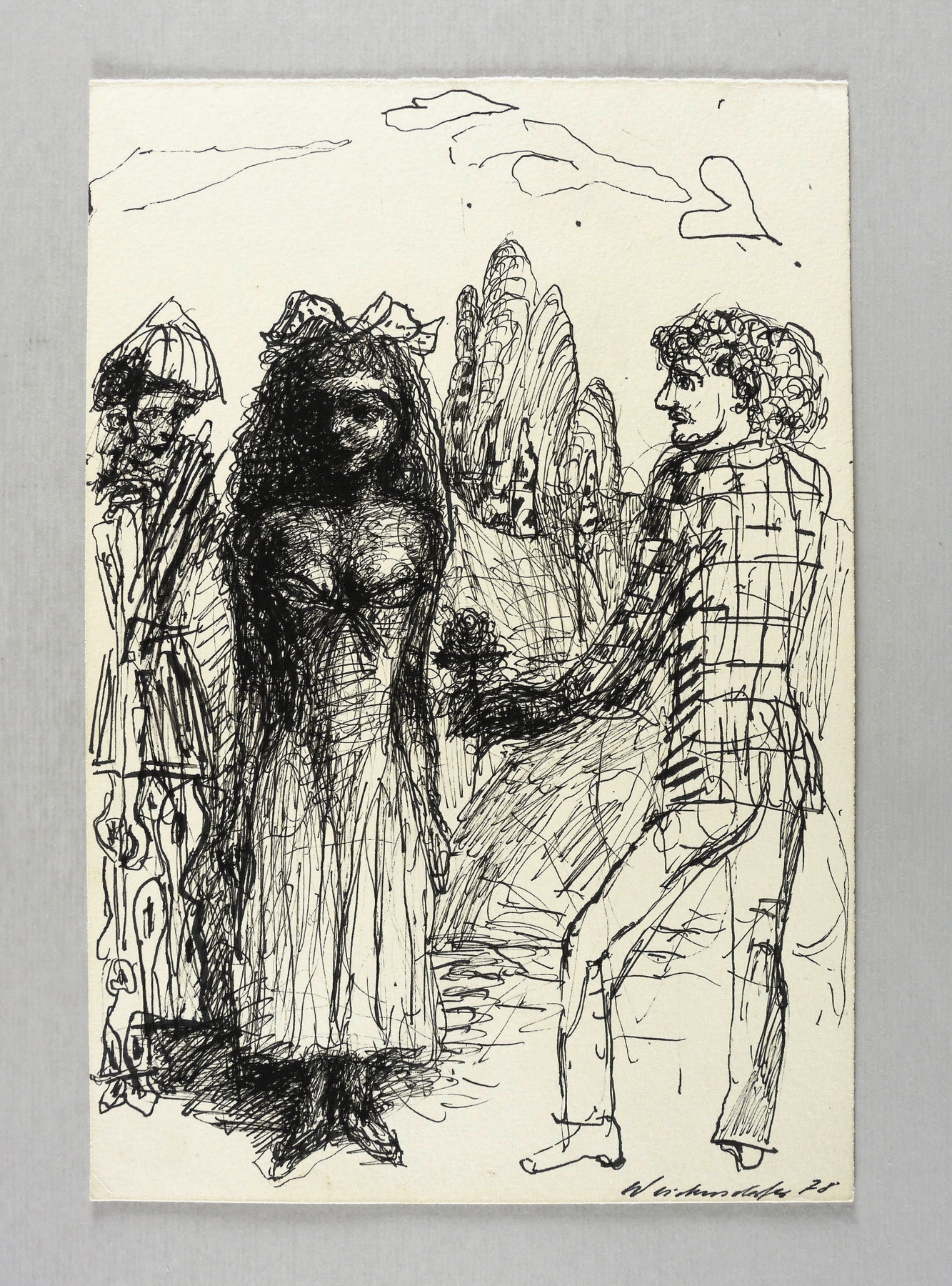 Rechts unten in schwarzer Feder signiert und datiert: ″Weidensdorfer 78″. Verso eigenhändig bezeichnet: ″(ein kleiner Seitenzweig des Lithos 'Begegnung')″. – Tadellos. Sehr guter Zustand.