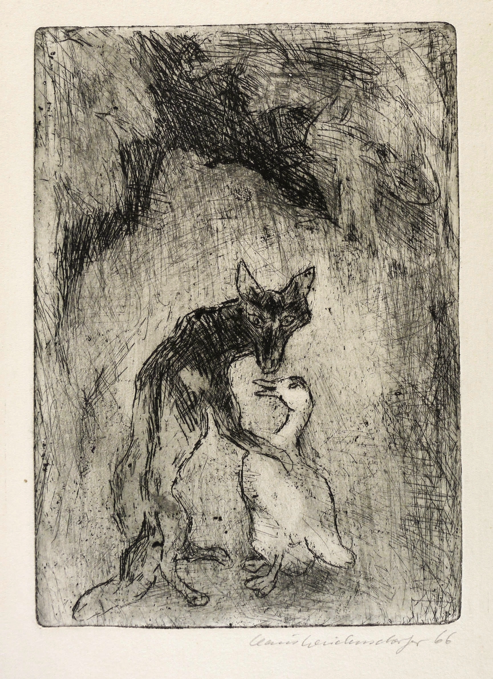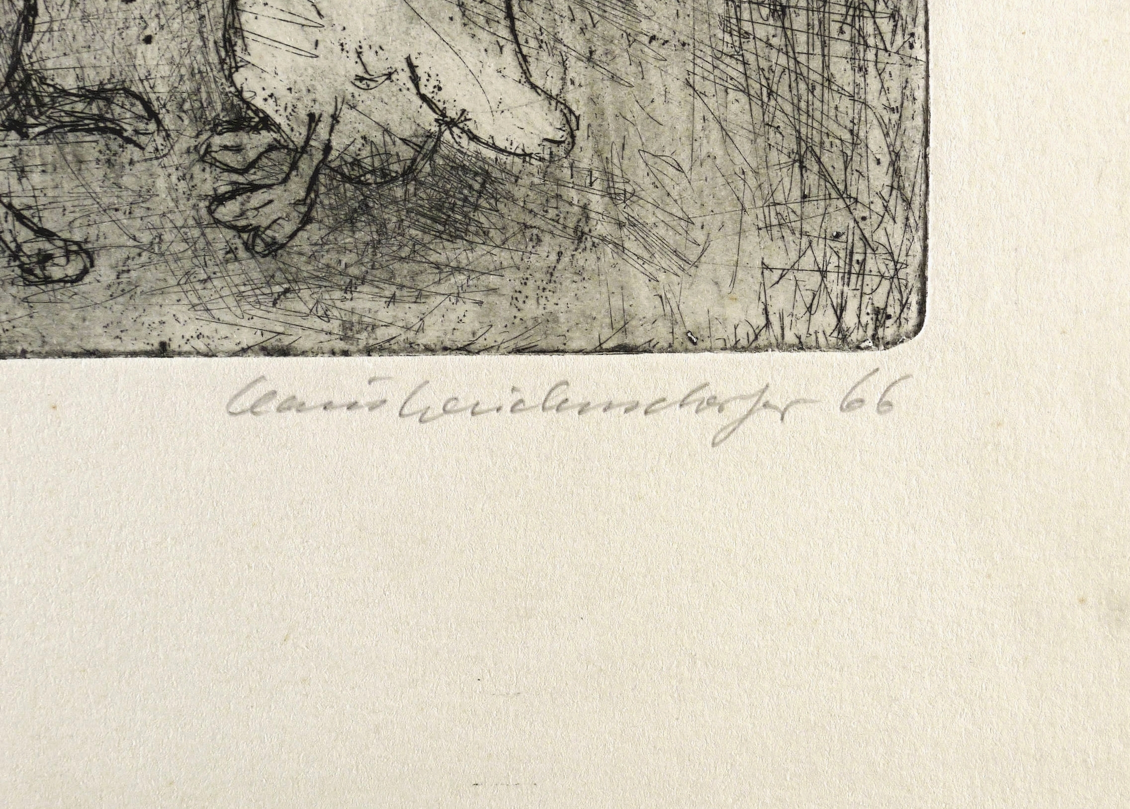 1966. Radierung / Strichätzung, in Schwarz, auf chamois Velinkarton. – Originale Künstlergrafik, von Claus Weidensdorfer. – 21,6 x 15,3 cm (Darstellung / Platte), 38 x 26 cm (Blatt).