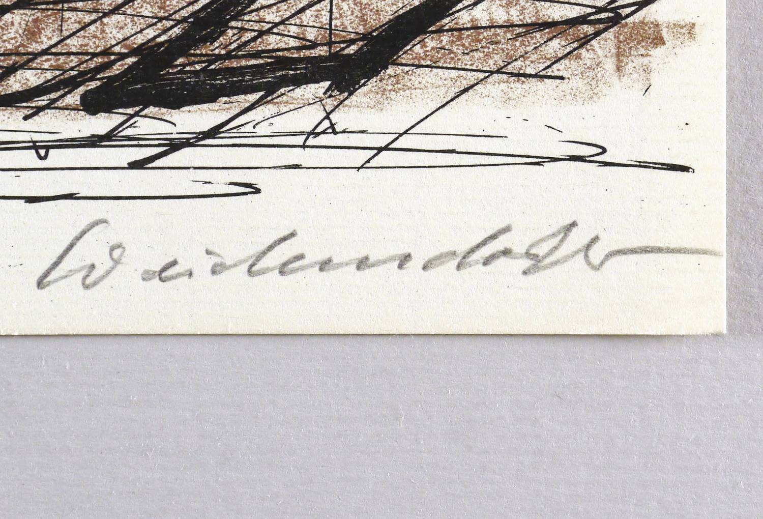 Um 1990. Farboffset, in 3 Farben, auf hellchamois Maschinenbütten. – Originale Künstlergrafik, von Claus Weidensdorfer. – 20,8 x 58,5 cm (Darstellung / Blatt).
