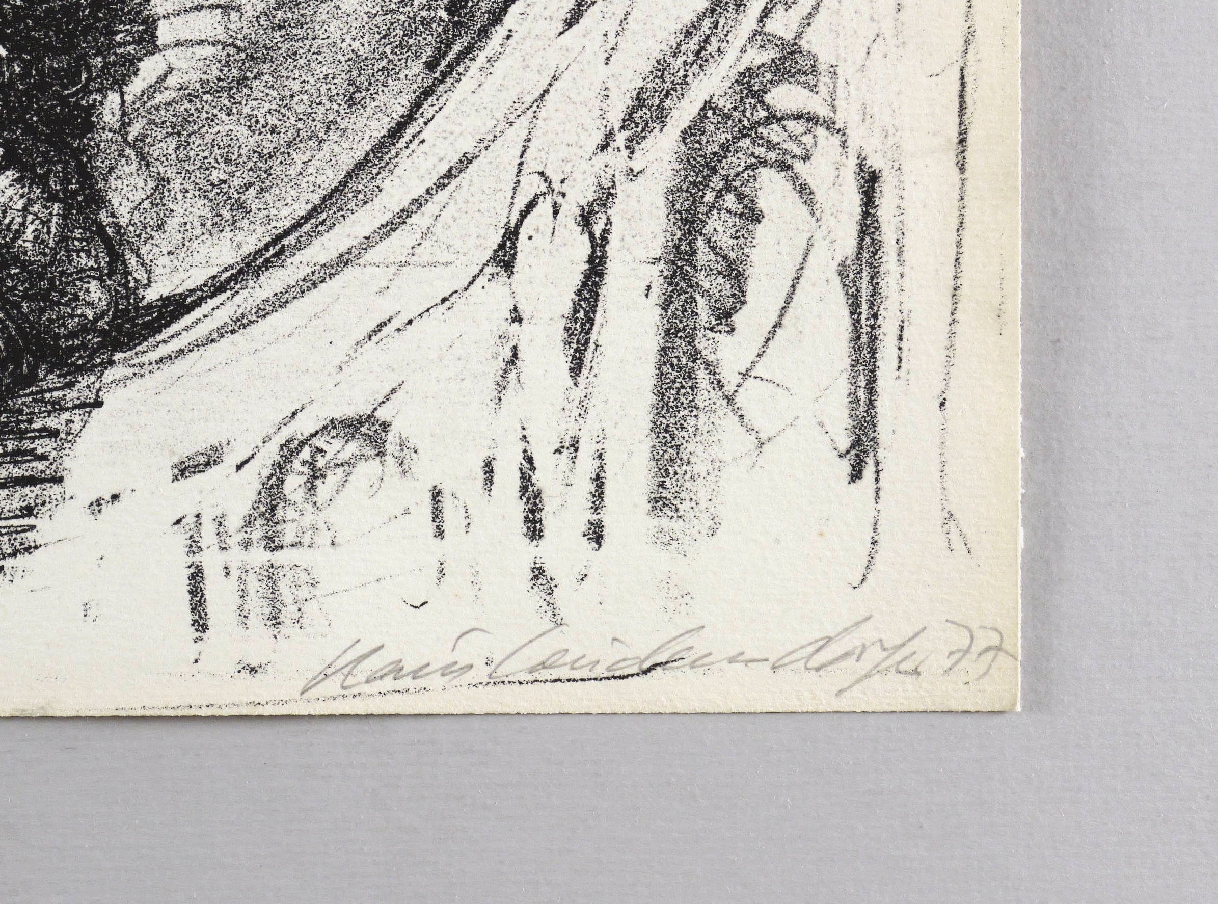 1977. Lithografie / Kreidelithografie, in Schwarz, auf hartem hellchamois Velinkarton. – Ausstellungsplakat, von Claus Weidensdorfer. – Druckerexemplar. – 75,5 x 52,5 cm (Darstellung / Blatt).