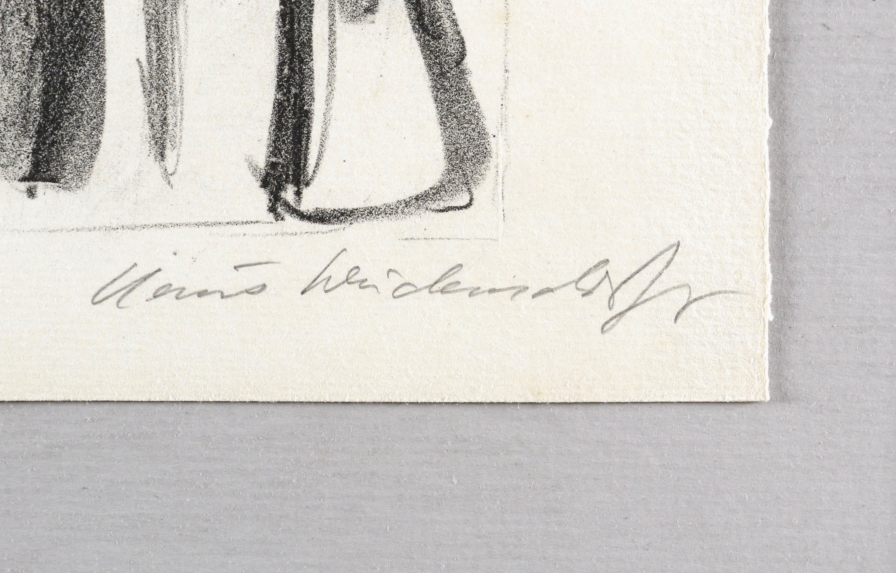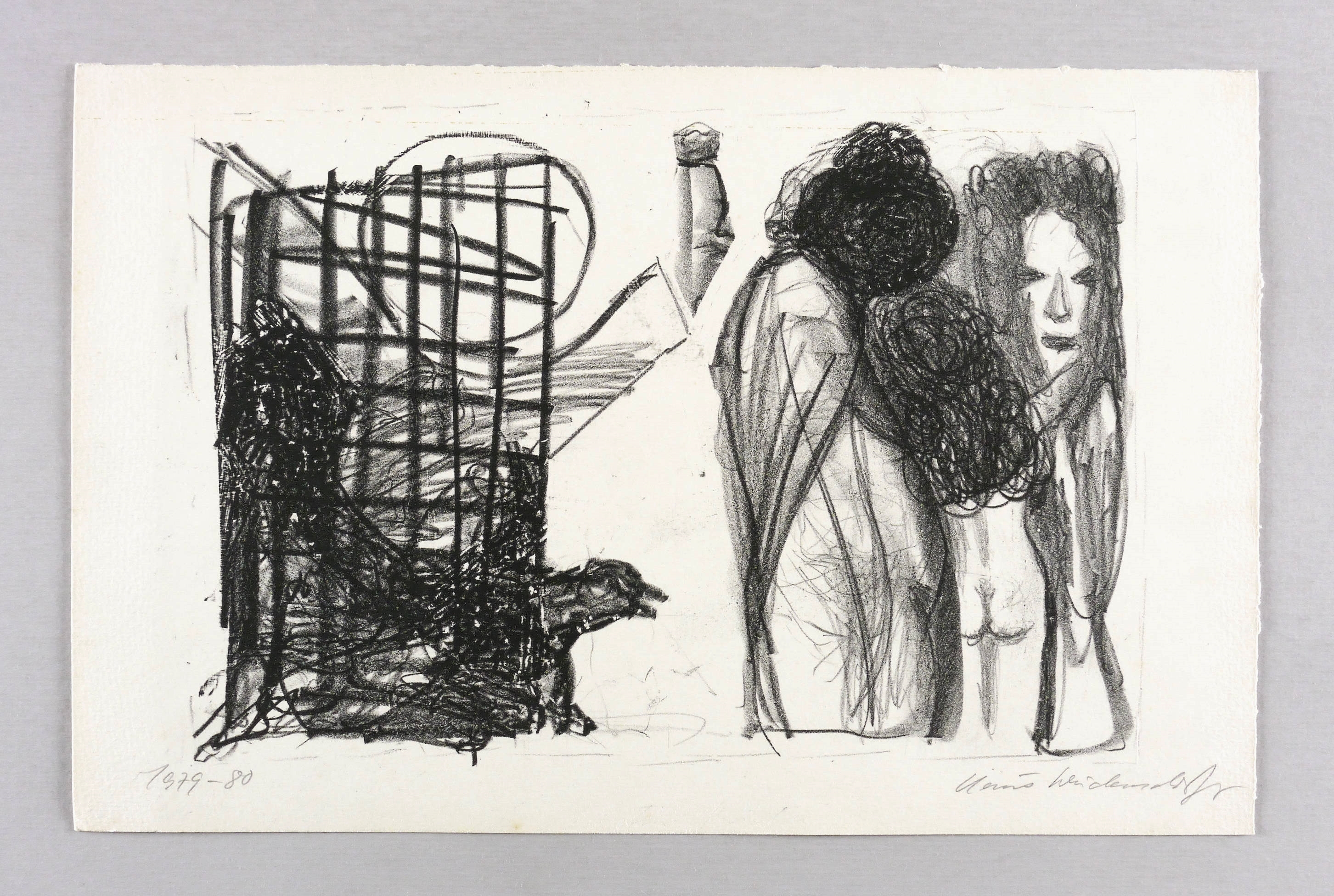 1979/1980. Lithografie / Kreidelithografie, in Schwarz, auf hellchamois Velinkarton. – Originale Künstlergrafik, von Claus Weidensdorfer. – Probedruck. – 21,8 x 31,5 cm (Darstellung / Druckbild), 26 x 39 cm (Blatt).