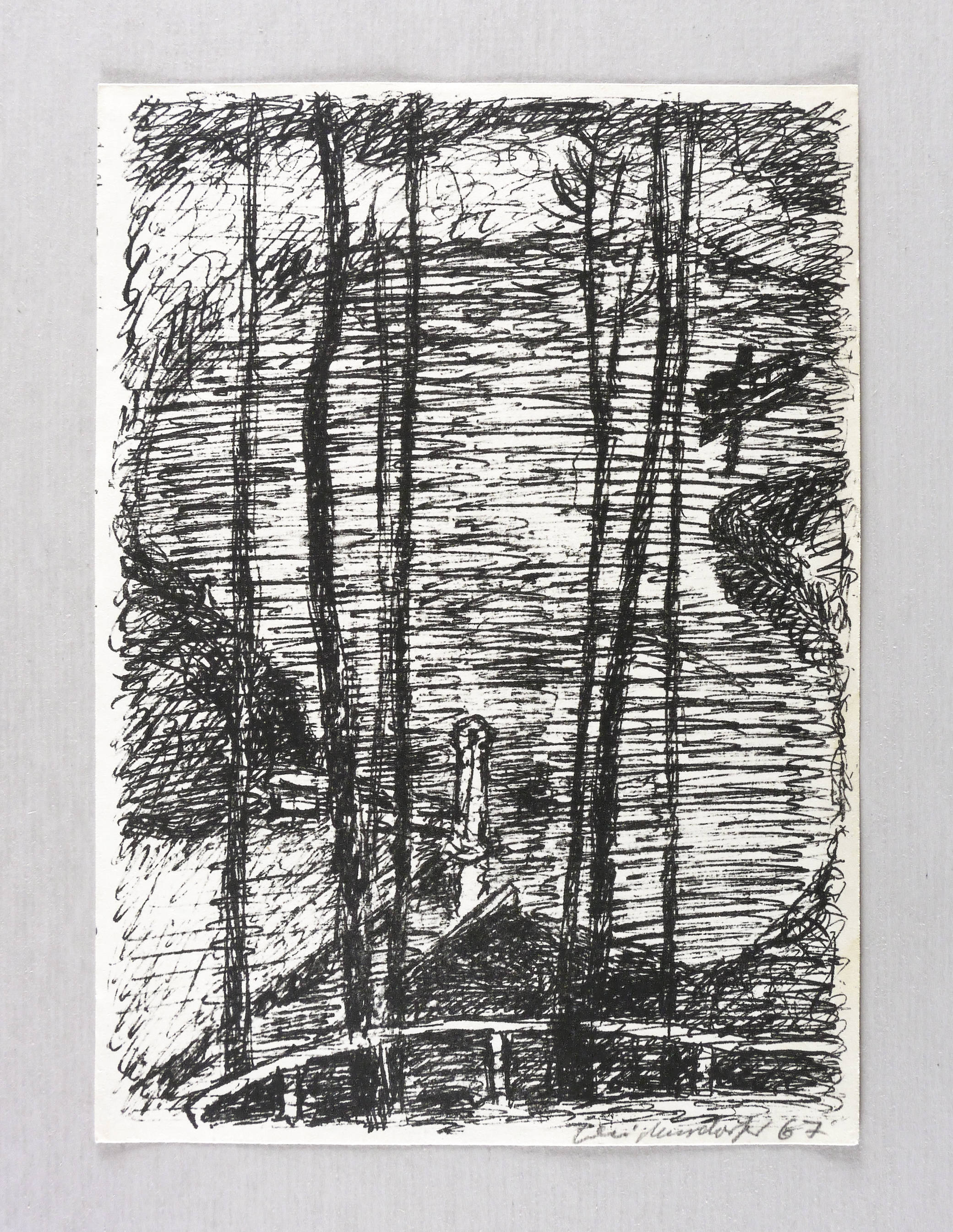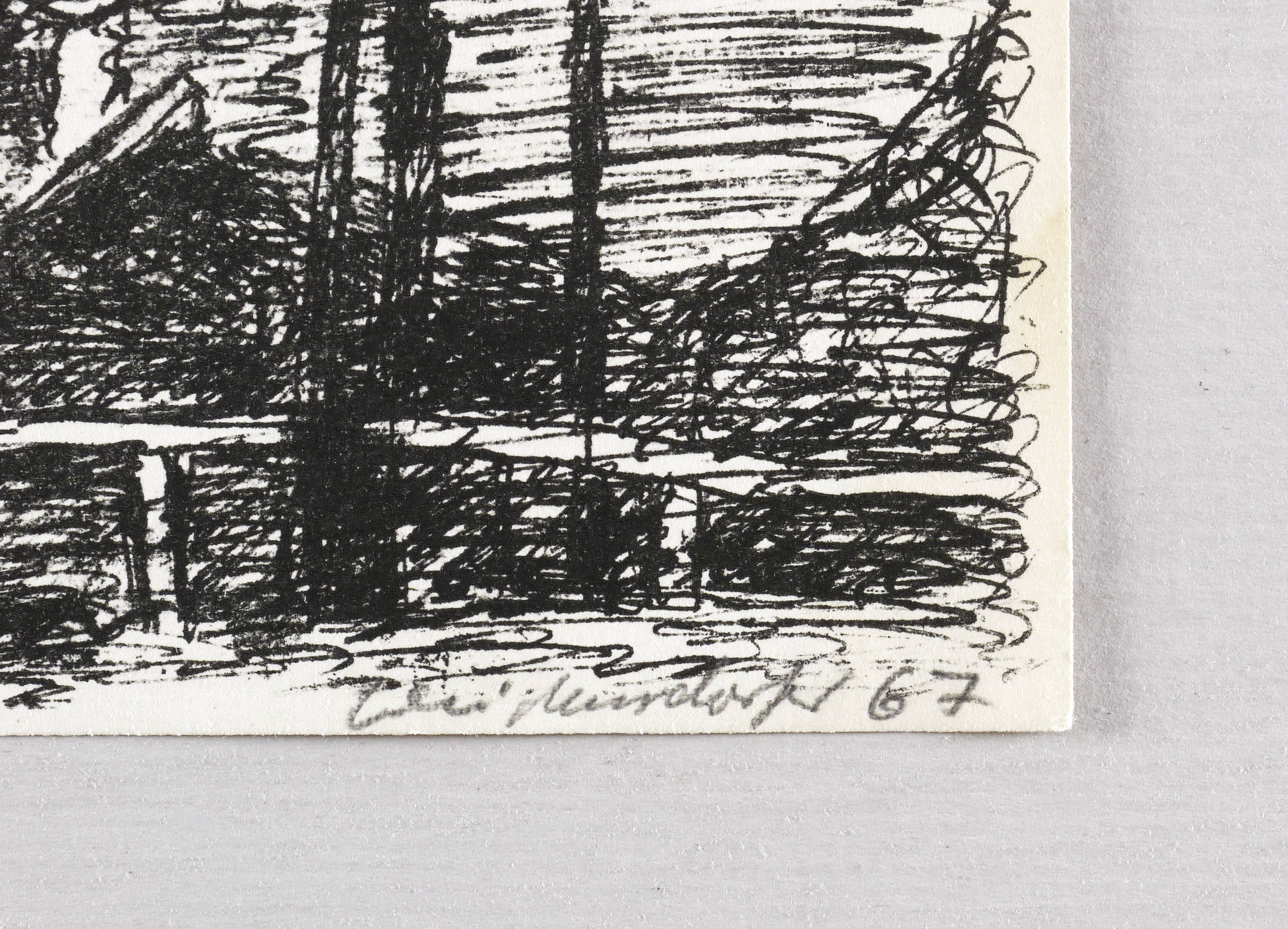 1967. Lithografie / Federlithografie, in Schwarz, auf leichtem hellchamois Velin. – Originale Künstlergrafik, von Claus Weidensdorfer. – 21,5 x 15,6 cm (Darstellung / Druckbild), 22,0 x 15,8 cm (Blatt).