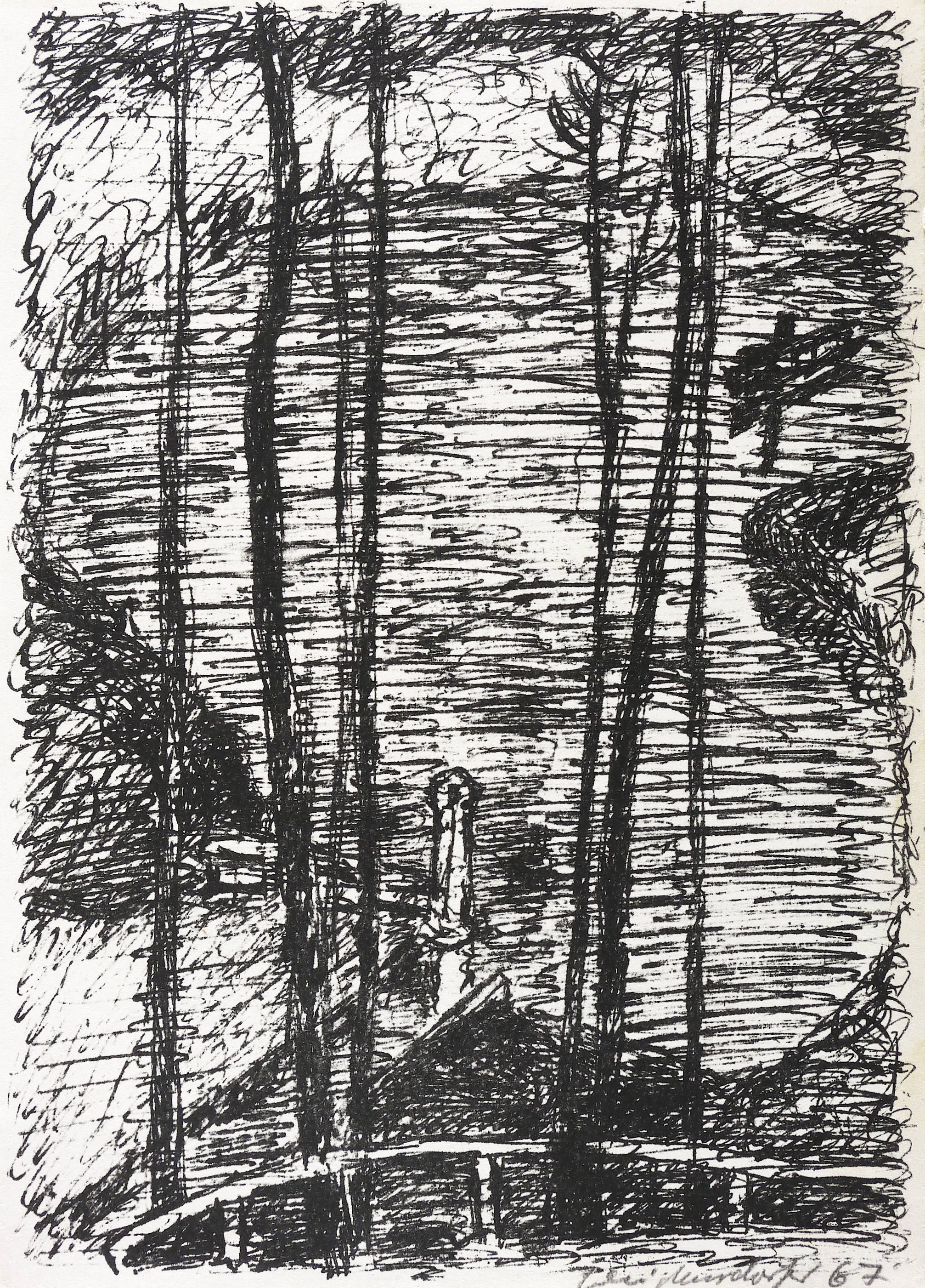 Weidensdorfer, Claus. – „Bäume vor See (Neujahrskarte II)”.