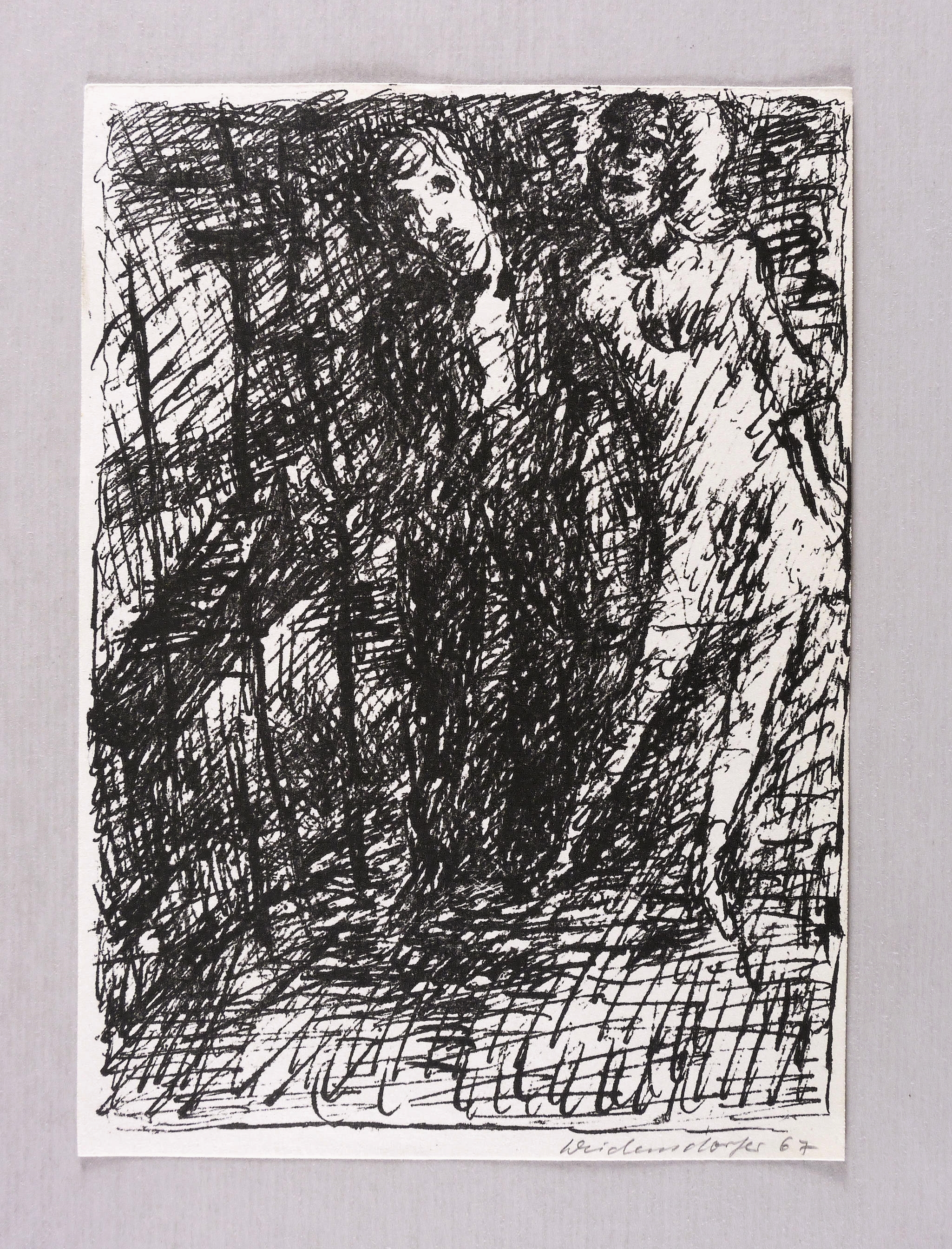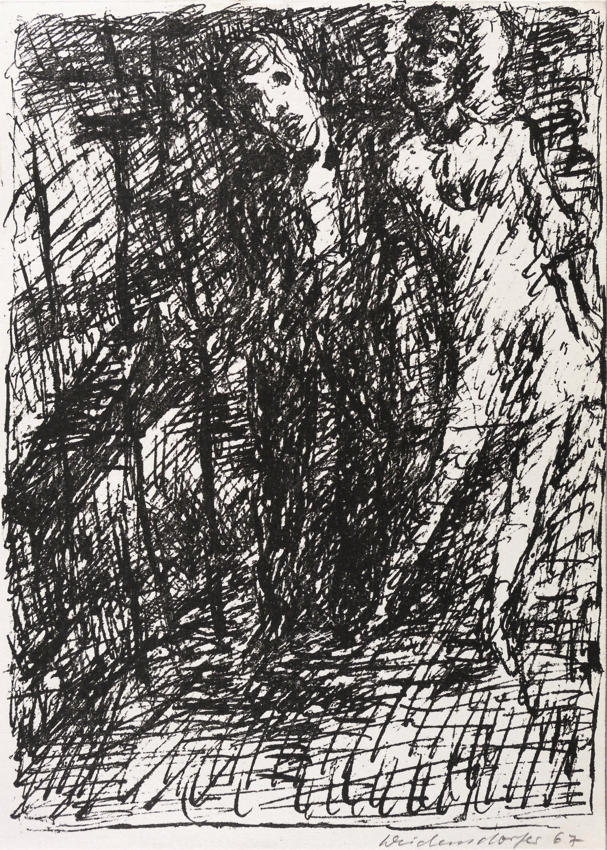1967. Lithografie / Federlithografie, in Schwarz, auf leichtem hellchamois Velin. – Originale Künstlergrafik, von Claus Weidensdorfer. – 21,3 x 15,6 cm (Darstellung / Druckbild), 22,0 x 15,8 cm (Blatt).