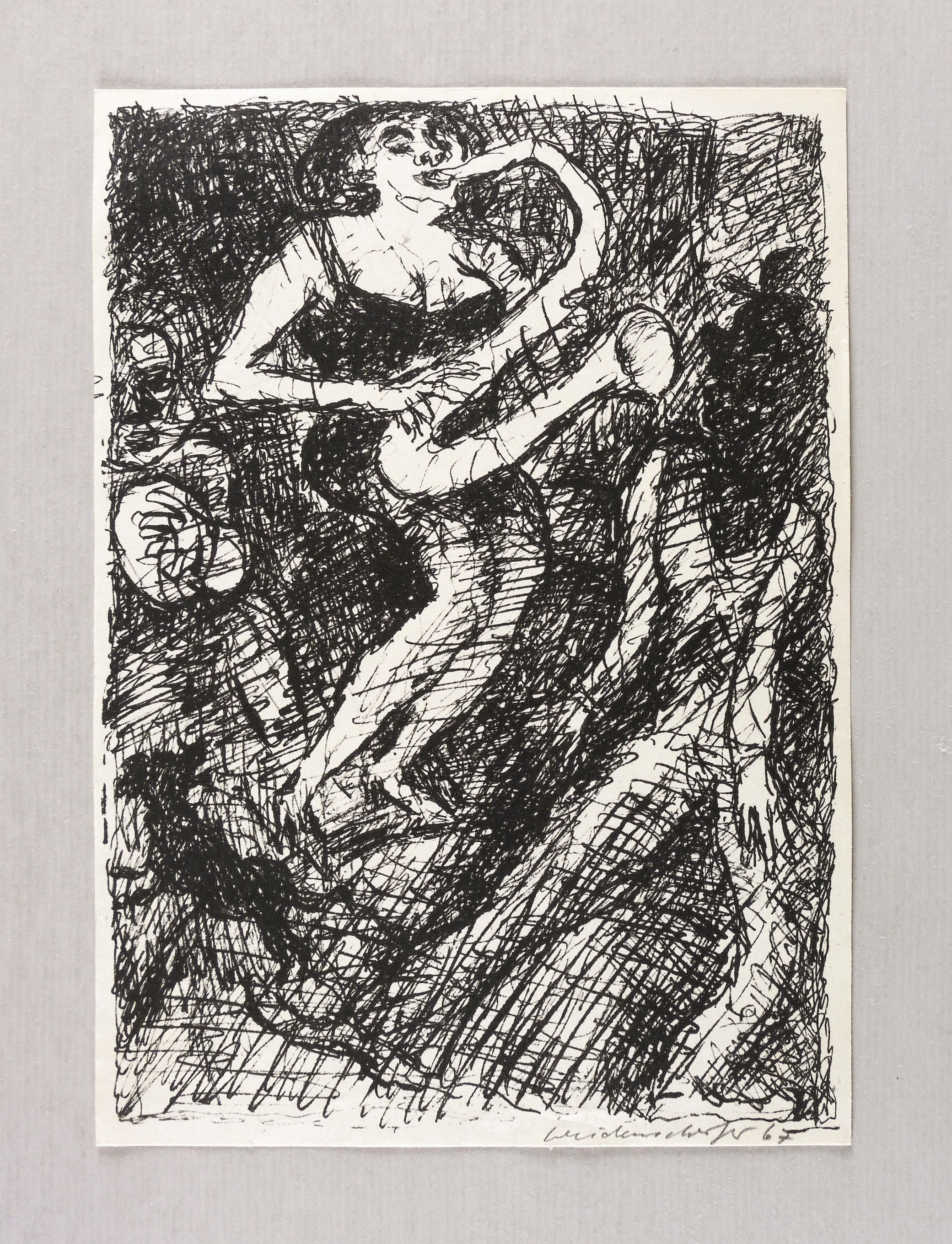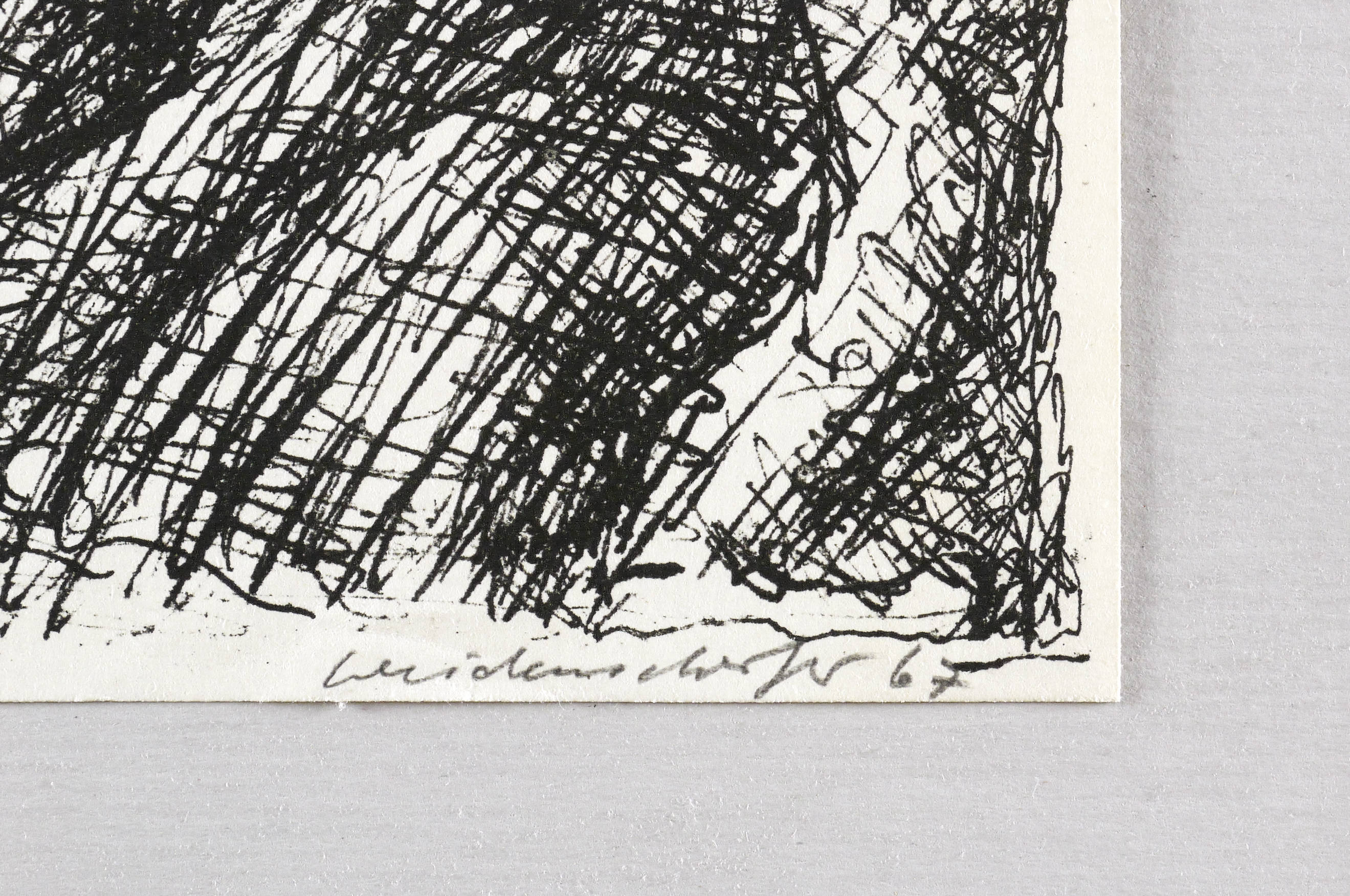 1967. Lithografie / Federlithografie, in Schwarz, auf leichtem hellchamois Velin. – Originale Künstlergrafik, von Claus Weidensdorfer. – 21,4 x 15,4 cm (Darstellung / Druckbild), 22,0 x 15,9 cm (Blatt).