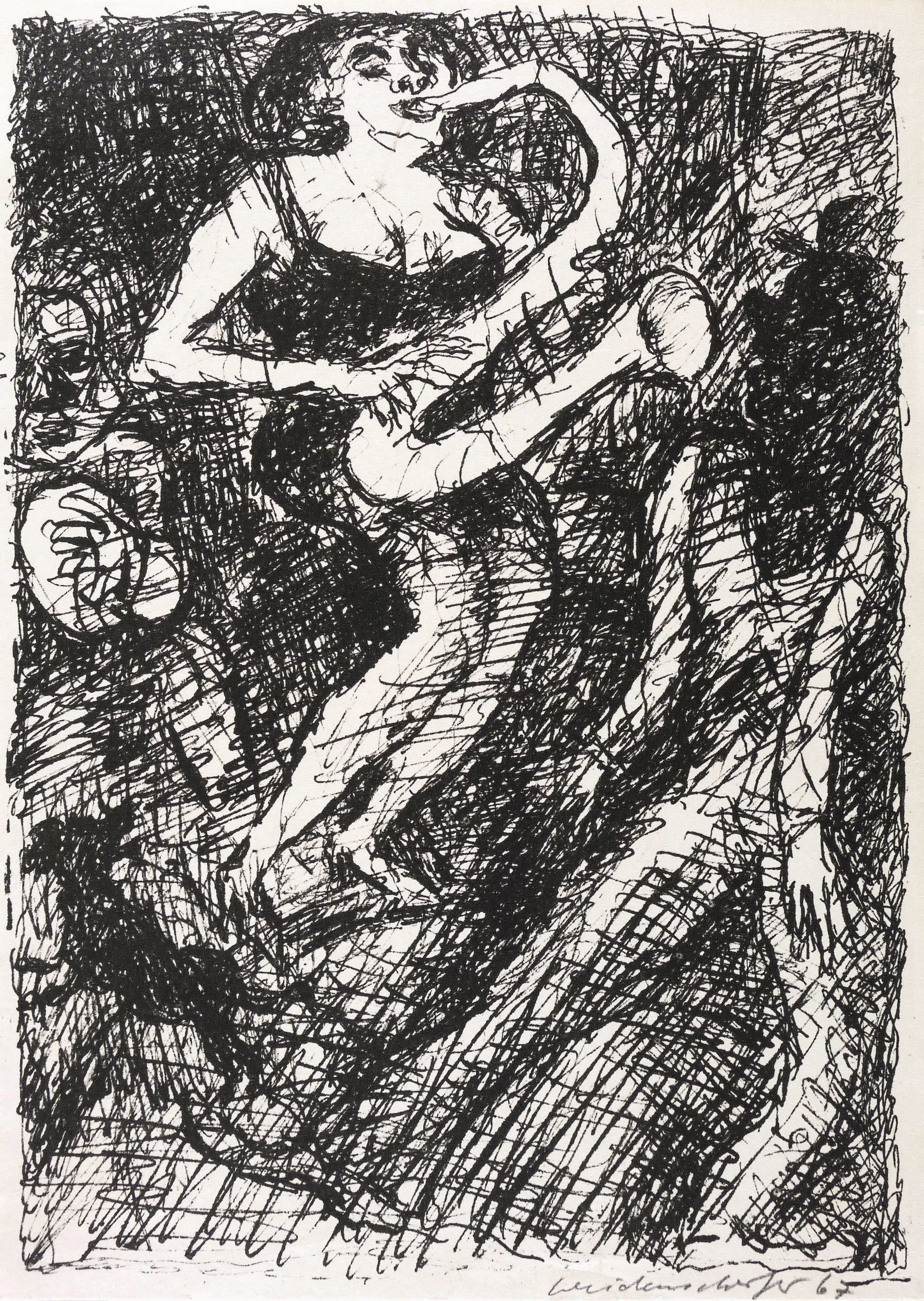 Weidensdorfer, Claus. – „Saxophonspielerin (Neujahrskarte V)”.