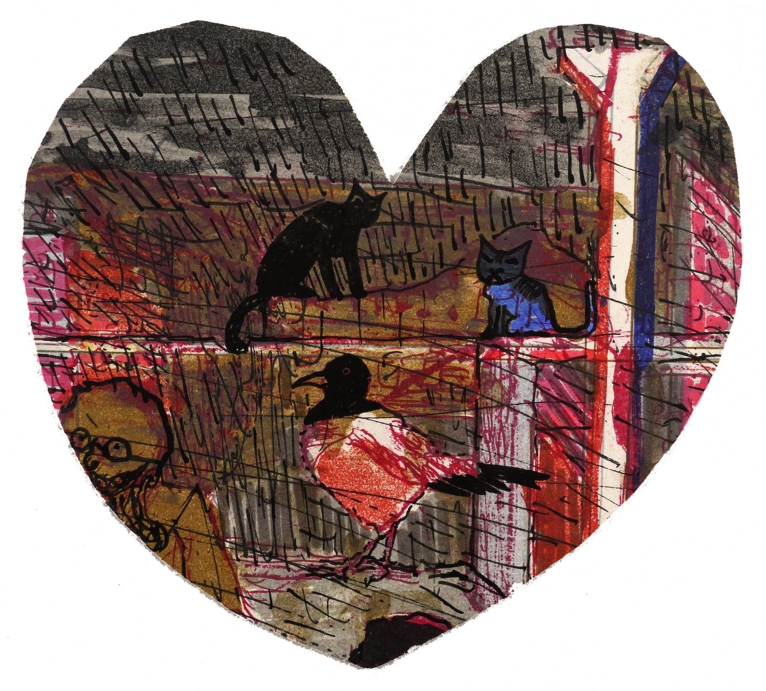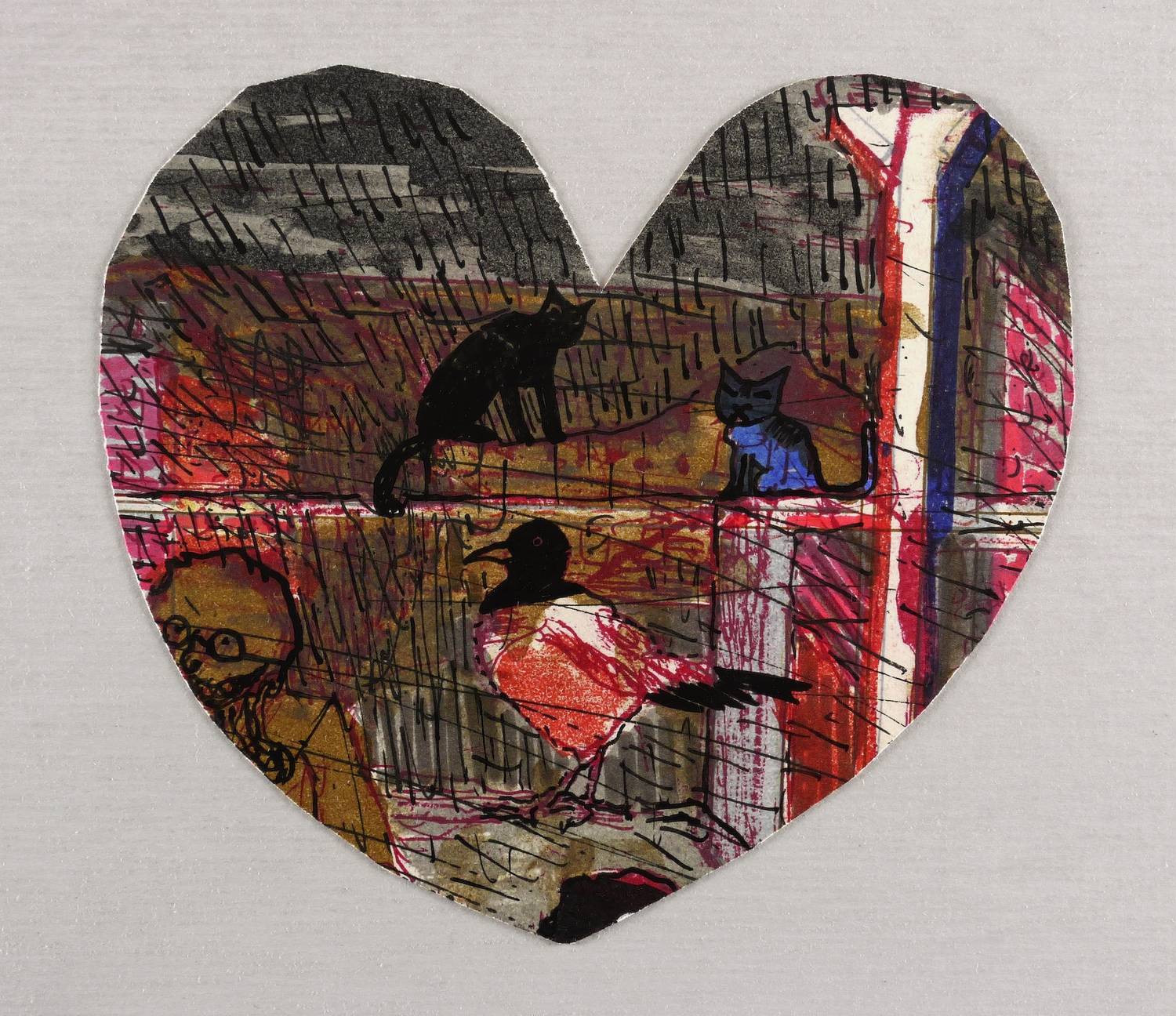 Weidensdorfer, Claus. – „Herz (Zwei Katzen und Elster)”.
