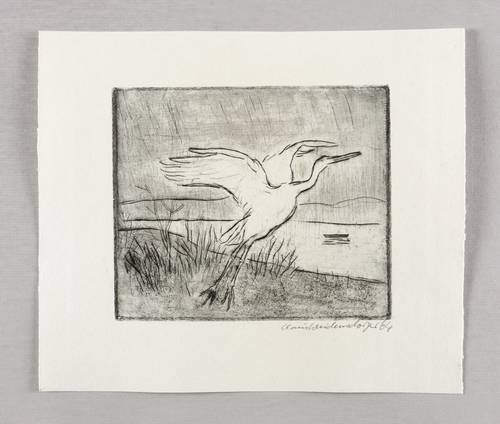 1964. Radierung / Kaltnadel, in Schwarz, auf kräftigem hellchamois Velinkarton. – Originale Künstlergrafik, von Claus Weidensdorfer. – 13,8 x 16,4 cm (Darstellung / Platte), 22 x 25 cm (Blatt).