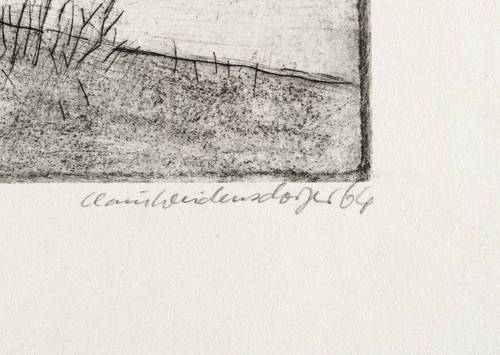 Rechts unten in Bleistift signiert und datiert: ″Weidensdorfer 64″. – Nicht bei Muschter. – Wahrscheinlich nur eine Auflage von 20 Exemplaren. – Selten. – Sehr guter Zustand.