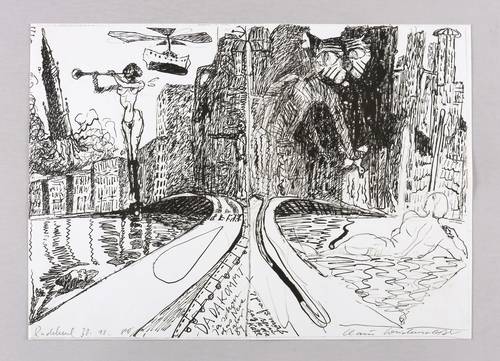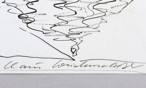 1980. Originaloffset / Kreide & Pinsel, in Schwarz, auf weißem Werkdruck. – Originale Künstlergrafik, von Claus Weidensdorfer. – 30,2 x 42,0 cm (Darstellung / Blatt).